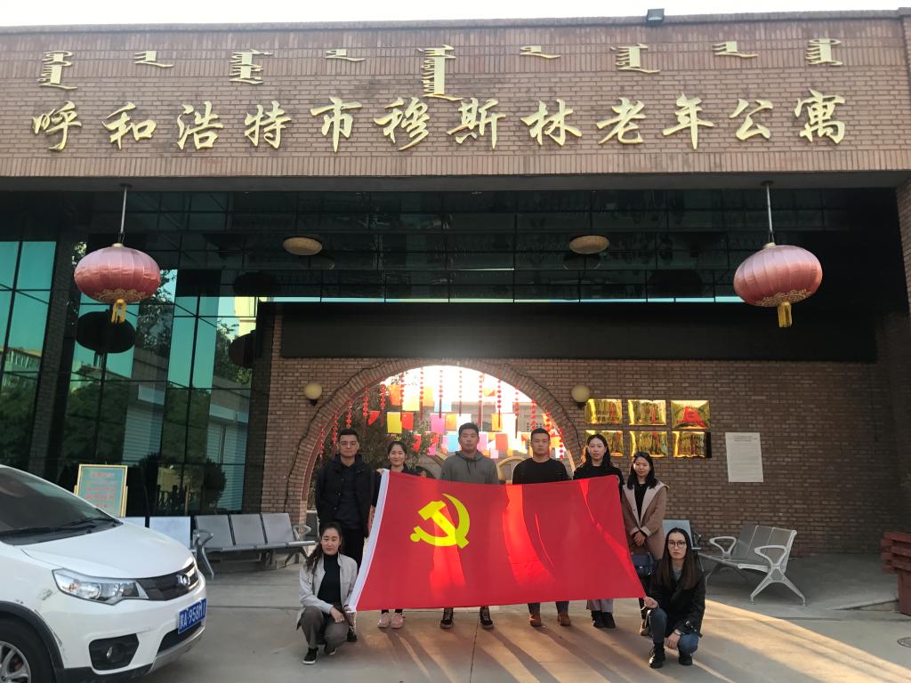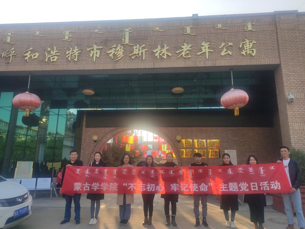 为更好的践行“不忘初心、牢记使命”主题教育,通过开展志愿活动的方式,强化党员学生为民服务、奉献社会的责任感,10月21日下午,蒙古学学院与新闻传媒学院学生党支部前往呼和浩特市穆斯林老年公寓开展了“不忘初心、牢记使命”主题教育志愿服务活动。蒙古学学院、新闻传媒学院学生党支部书记根领、白淑华带队,支部全体党员同学参加了活动。