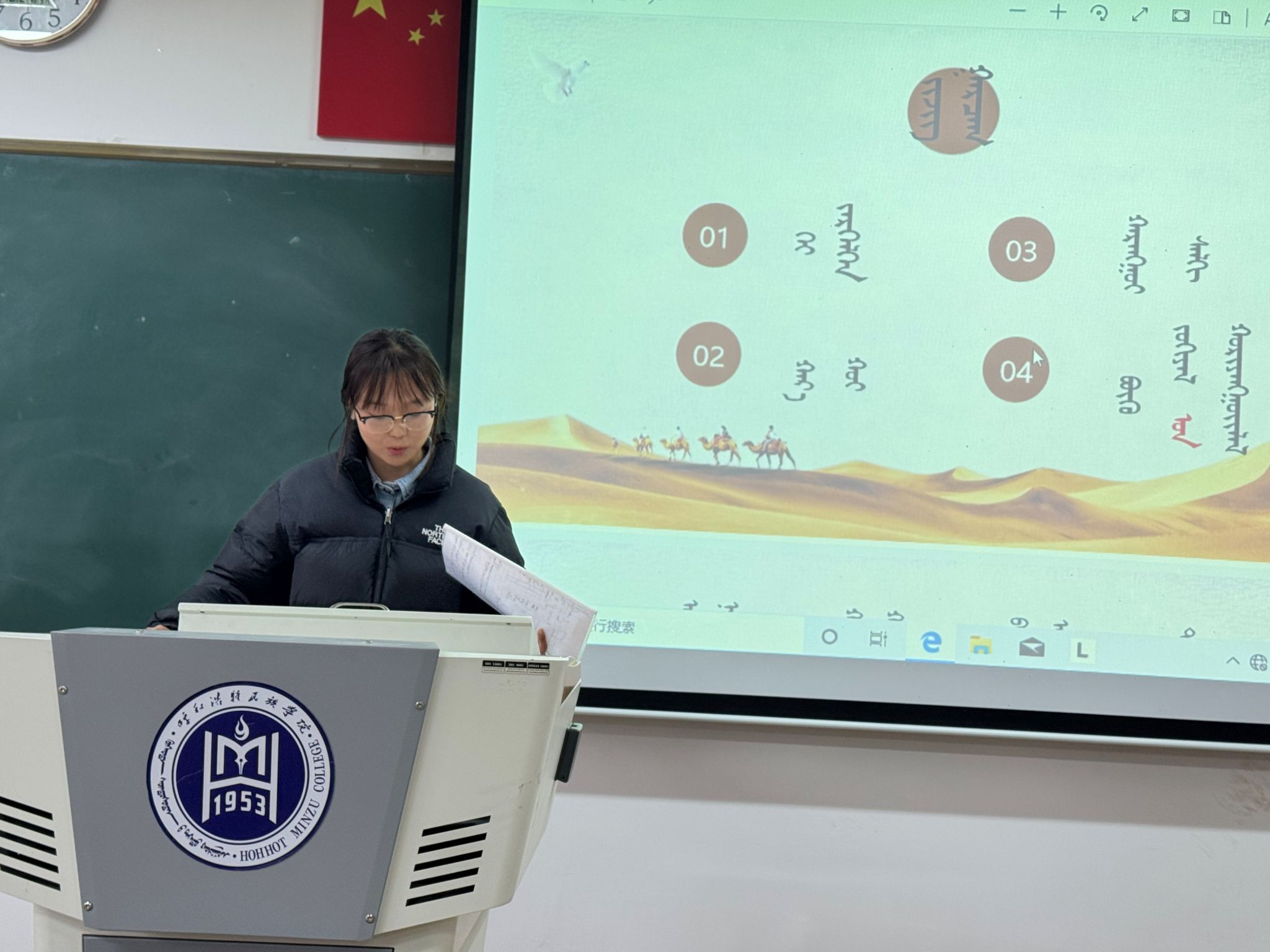 此次大赛的评委由蒙古学学院院长王福清老师、副处级组织员阿力坦斯那嘎老师、蒙古语言文学教研室主任傲云其木格老师、常玉梅教授、扎拉嘎夫老师担任。评委们凭借专业知识和丰富经验,为参赛学生们提供了宝贵的意见与建议,助力学生们在教学技能方面不断提升。