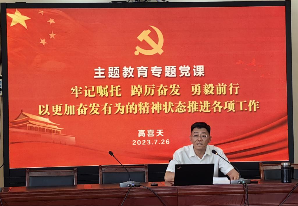 为深入学习贯彻习近平新时代中国特色社会主义思想,7月26日下午,党委委员、副校长高喜天在办公楼四楼会议室以“牢记嘱托 踔厉奋发 勇毅前行,以更加奋发有为的精神状态推进各项工作”为题,为人事处、发展规划与学科建设处、团委、国有资产管理处、信息中心、公共管理学院、化学与环境学院等分管部门单位党员干部讲授了专题党课。