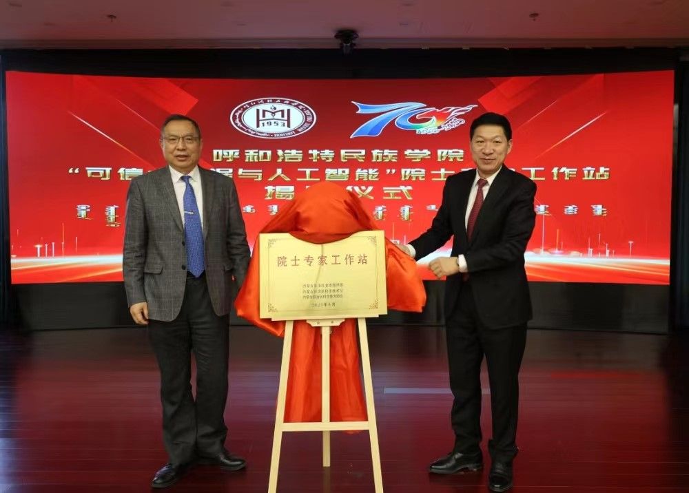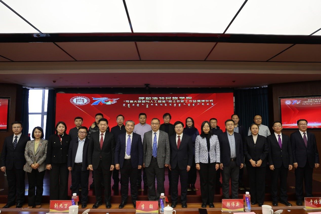 在学校喜迎建校70周年之际,12月18日下午,best365官网中文版登录“可信大数据与人工智能”院士专家工作站揭牌仪式在学校综合楼12楼隆重举行。上海交通大学李颉院士、自治区科学技术协会一级巡视员格日乐图、内蒙古大数据中心副主任高静、自治区农牧业科学院副院长于传宗,自治区科技厅国际合作处处长史广旭、自治区农牧业科学院研究员王保林、内蒙古大学教务处处长周建涛,内蒙古师范大学计算机科学技术学院副院长斯琴图及校党委书记刘九万,党委副书记、校长韩伟新等全体校领导出席揭牌仪式。学校党委委员、副校长高喜天主持揭牌仪式。