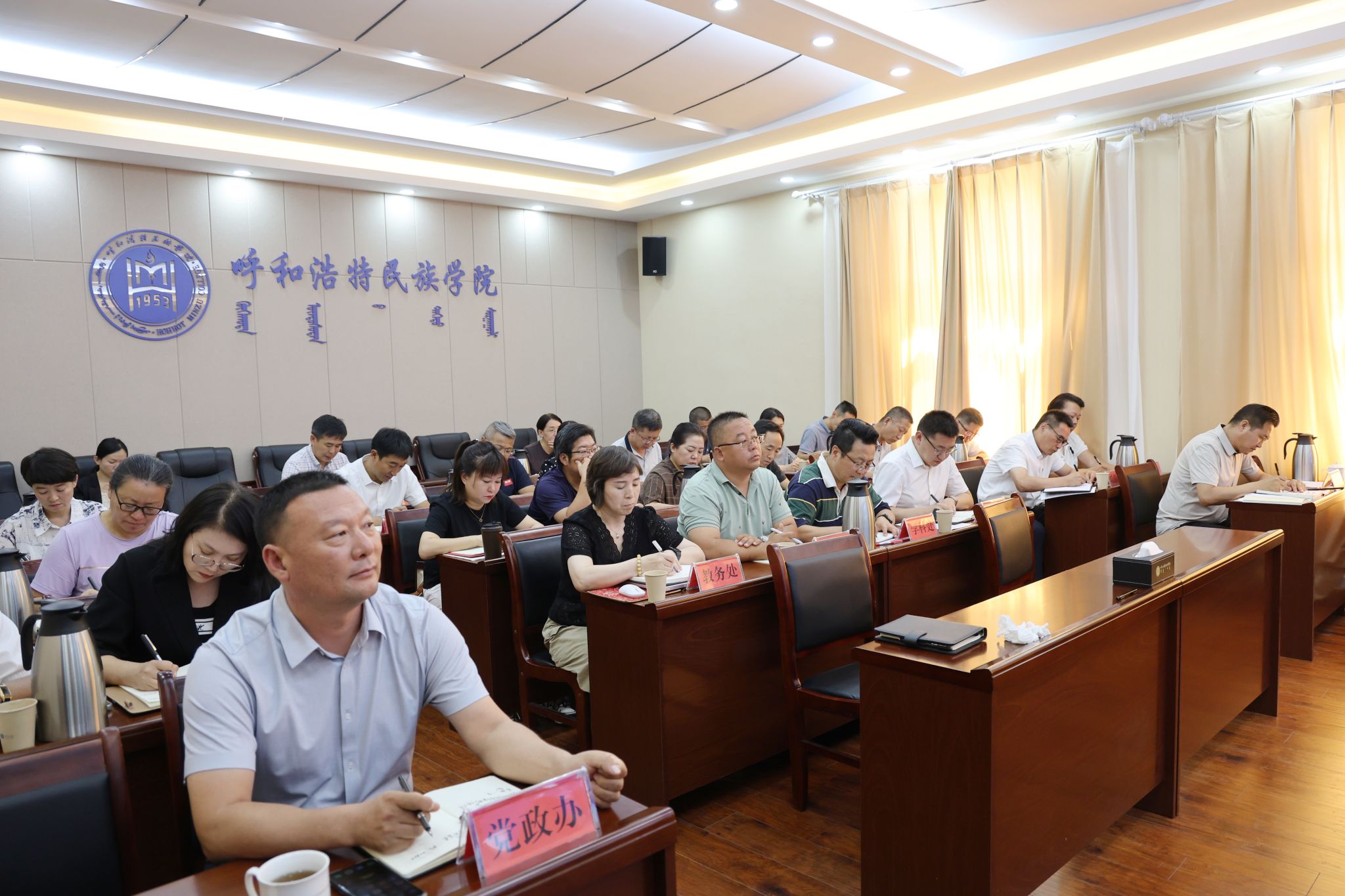 党政办、宣传部、教师工作部、学生工作部、学科建设与发展规划处、财务处、安全保卫处、后勤管理处、对外合作与交流中心、信息中心、实验管理中心,各学院负责人参加会议。