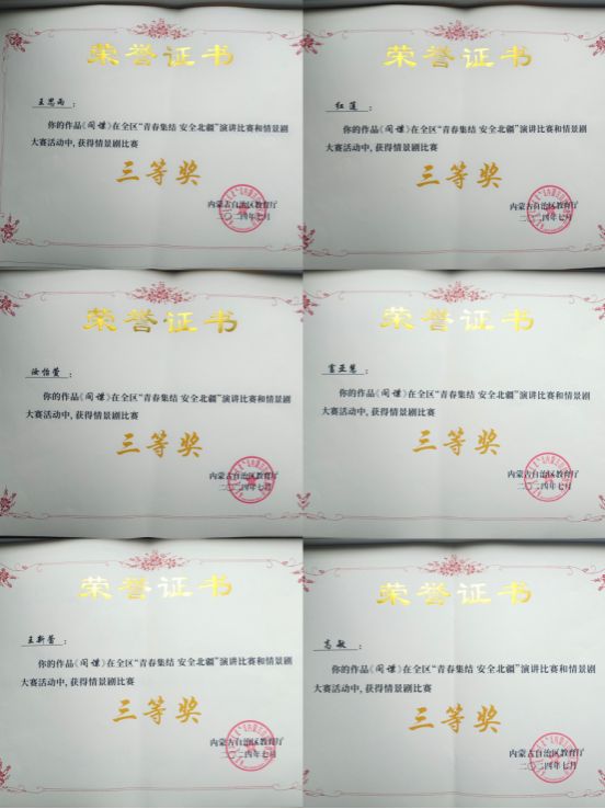 近日,根据自治区教育厅《关于组织“青春集结 安全北疆”演讲比赛和情景剧大赛自治区级比赛的通知》要求,best365选拔的参赛选手:数学与大数据学院高敏、王新蕾、富亚慧、汝怡萱、红莲、王思雨等6名同学的作品《间谍》荣获情景剧三等奖。