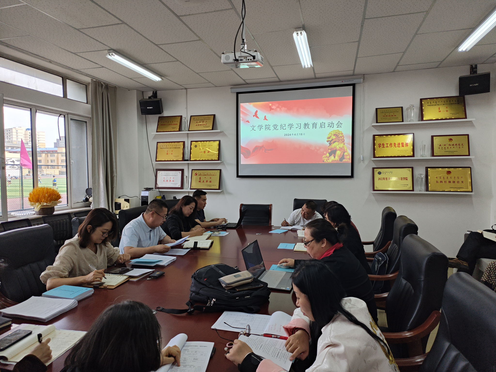 为深入贯彻落实中共中央办公厅印发的《关于在全党开展党纪学习教育的通知》精神,加强文学院党的建设,提升党员干部的党性修养和纪律意识,文学院于4月18日下午在会议室召开了党纪学习教育启动会。