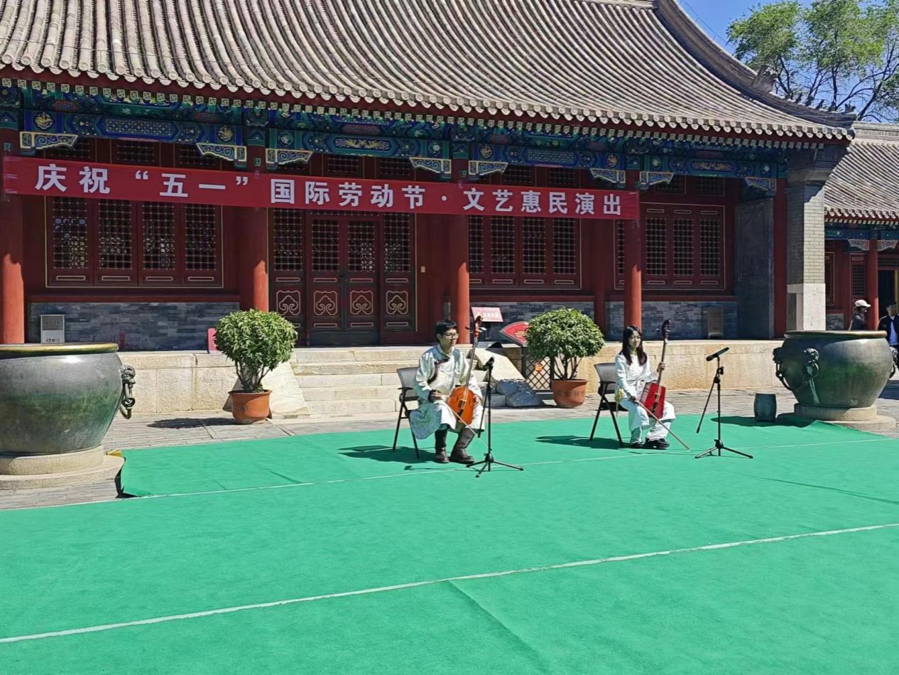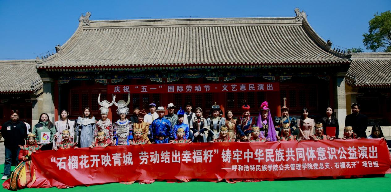 5月1日是劳动人民的节日,5月也是best365官网中文版登录民族政策宣传月。公共管理学院党总支为了进一步深化铸牢中华民族共同意识教育,依托文化产业管理专业优势,加强党建与业务融合,深度挖掘呼和浩特地区各民族交往交流交融的历史文化资源,选择在5月的第一天,在承载着民族团结故事的清和硕恪靖公主府的古建筑中开展文艺演出。同时开展游客的消费偏好调查、原创纪念品试卖等活动,为更好的开发公主府承载的民族团结元素,保护好历史建筑提供依据。