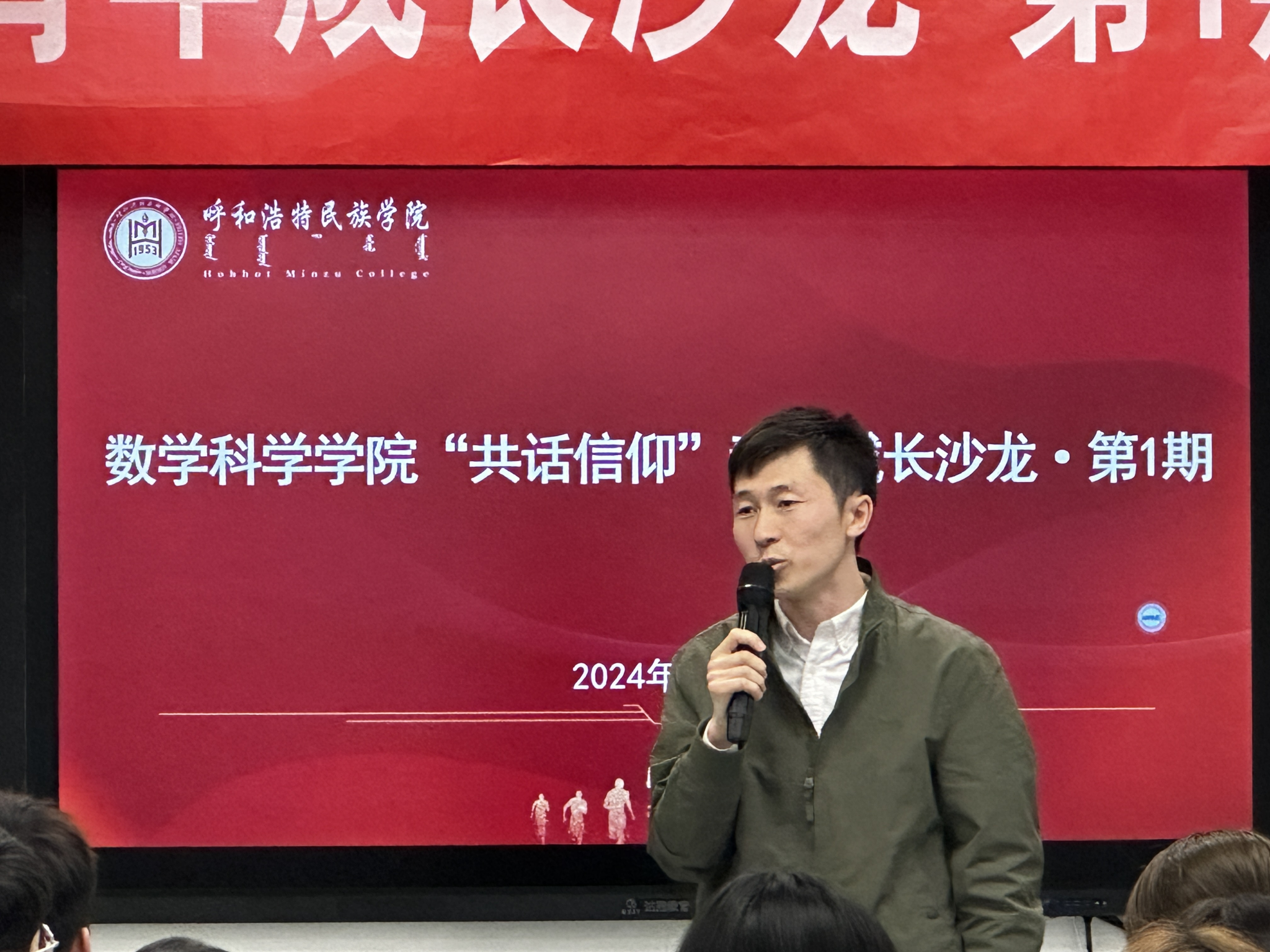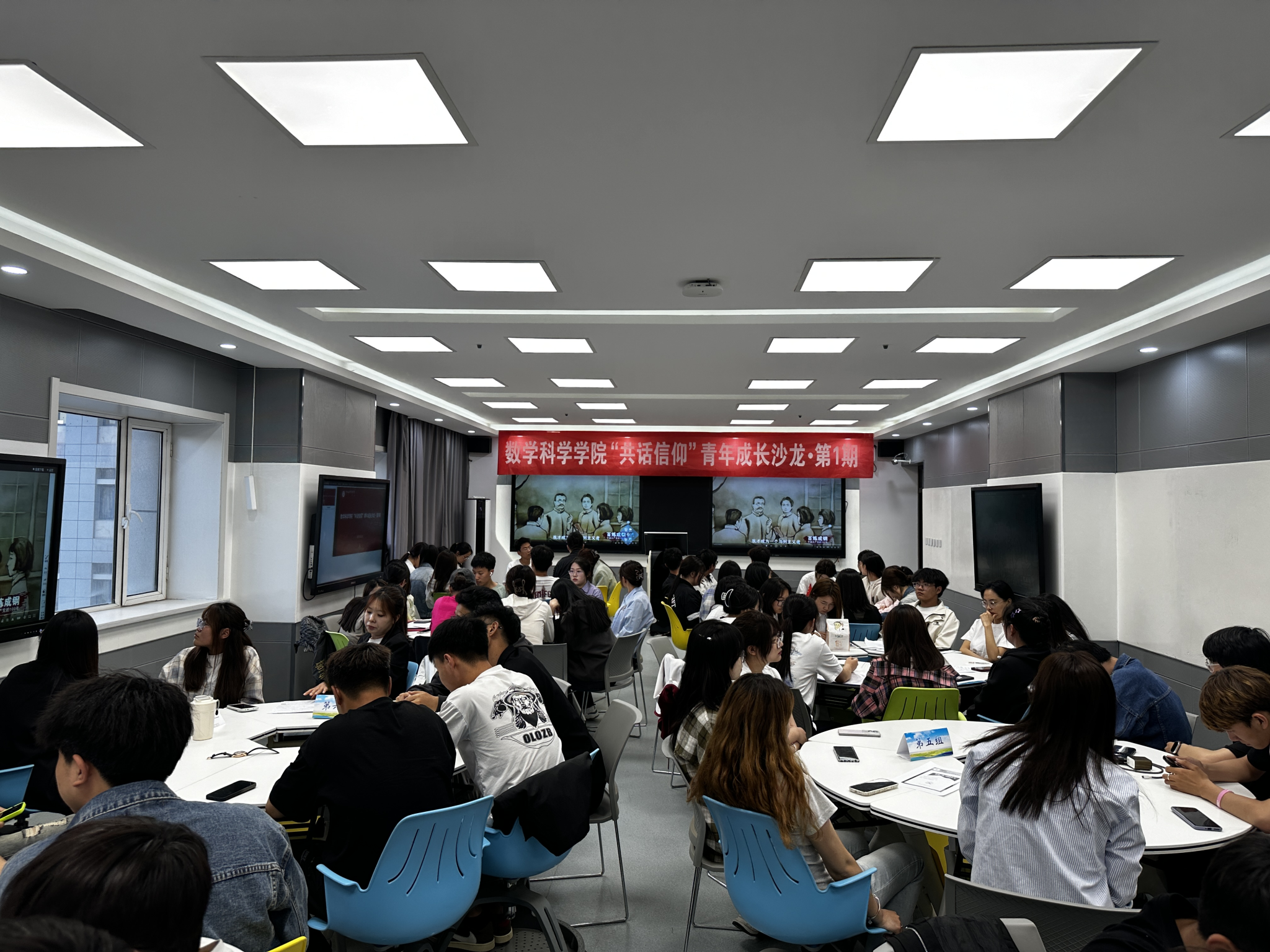 为进一步引领青年学子深入学习贯彻习近平新时代中国特色社会主义思想,增强自身使命意识与责任意识,争做有理想、敢担当、能吃苦、肯奋斗的新时代好青年,5月14日晚,数学科学学院在尚志楼423开展“共话信仰”青年成长沙龙·第一期活动。沙龙由学院团总支书记额日合木主持,学院“青马工程”培训班学员、各团支部代表、新发展团员代表共计90余名同学参与活动。