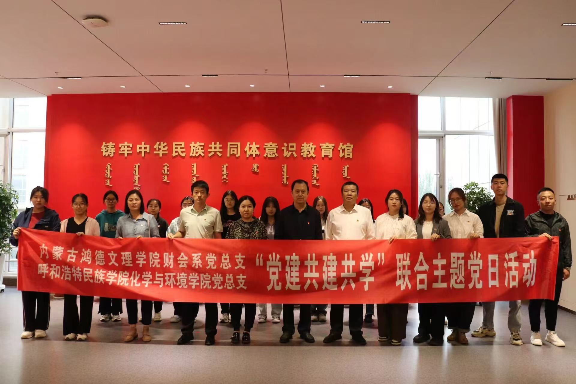 为深入贯彻落实党的二十大精神,铸牢中华民族共同体意识,积极探索党建与业务互促互进,充分发挥党建工作优势,实现在“党建+业务”共建中共同进步,开创合作发展的新局面。6月6日,化学与环境学院党总支与内蒙古鸿德文理学院财会系党总支联合开展“党建共建共学”主题党日活动。化学与环境学院党总支书记鄂亚彬、内蒙古鸿德文理学院财会系党总支书记白贵和双方教师代表参加本次活动。
