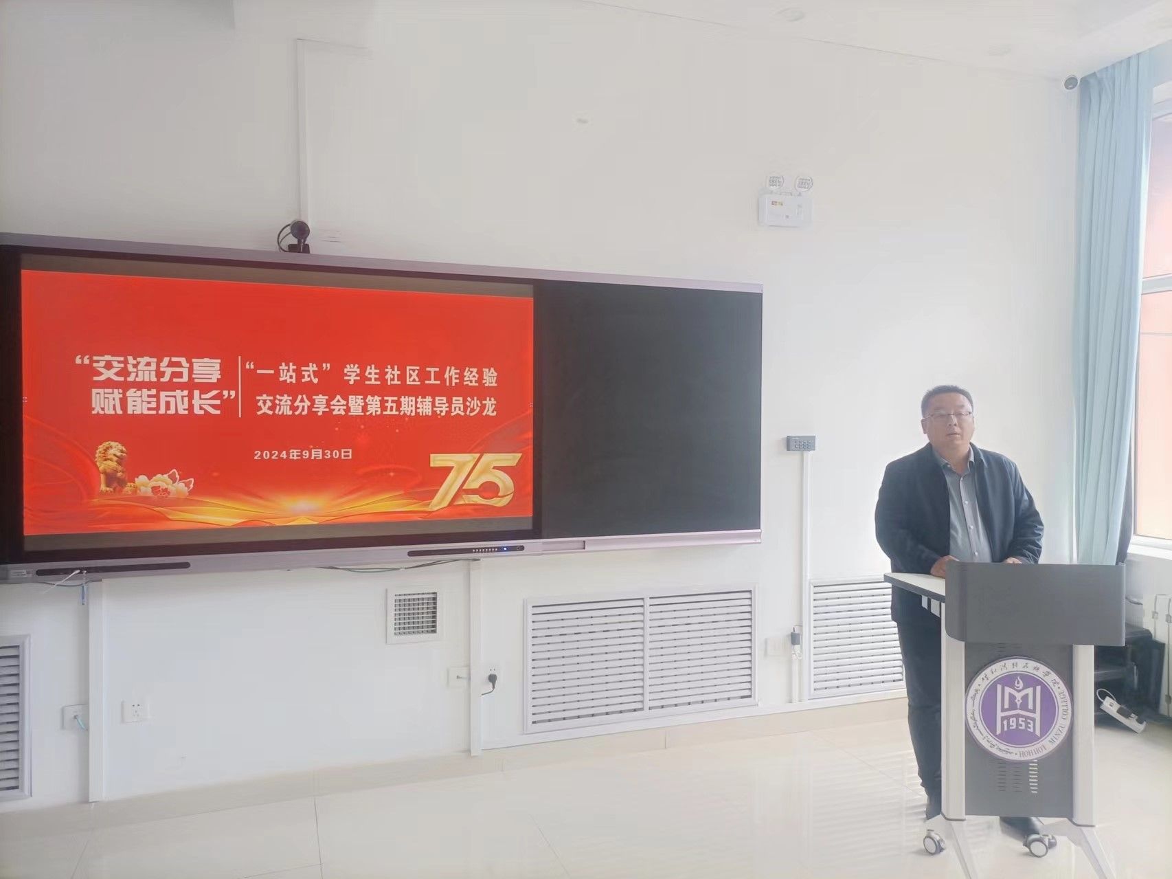 为全面加强和改进新时代“一站式”学生社区建设工作,提升辅导员队伍专业素养,9月30日下午,学生工作部在“一站式”学生社区团体辅导室组织召开了“交流分享,赋能成长”为主题的“一站式”学生社区工作经验交流分享会暨第五期辅导员沙龙。会议由学生工作部部长常喜主持。