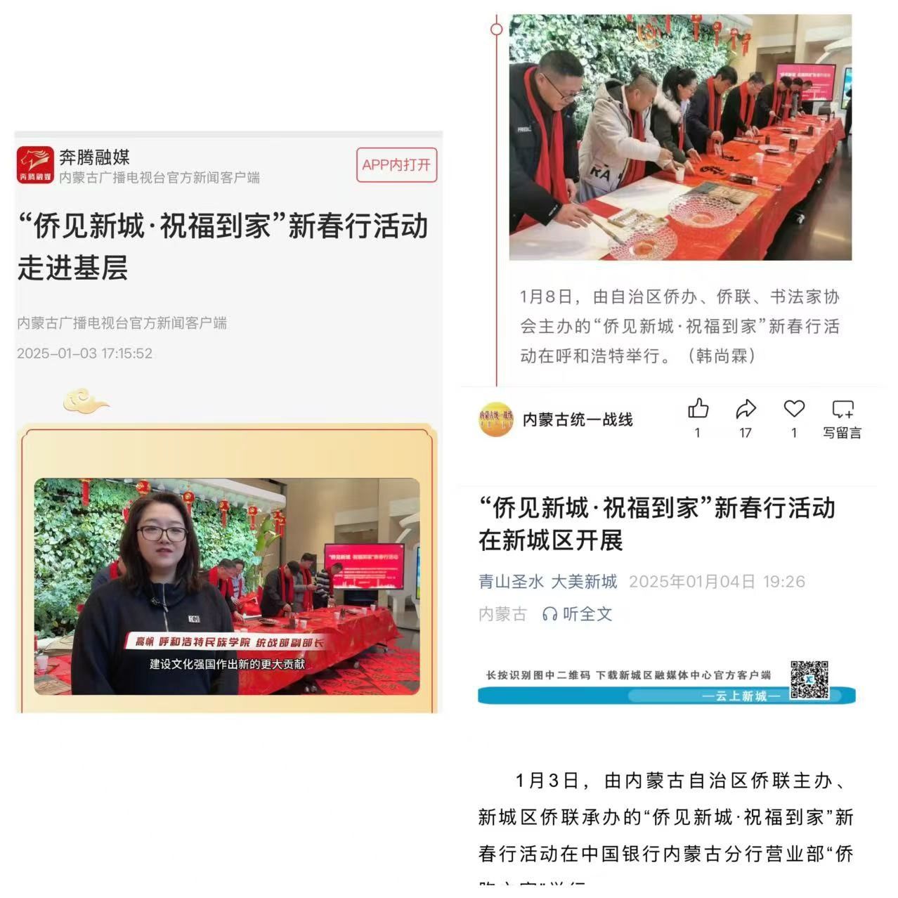 内蒙古侨联官微、内蒙古统一战线官微、奔腾融媒、新城区政府官微、澎湃新闻对活动进行了报道,学校作为四所高校代表接受了媒体采访报道。