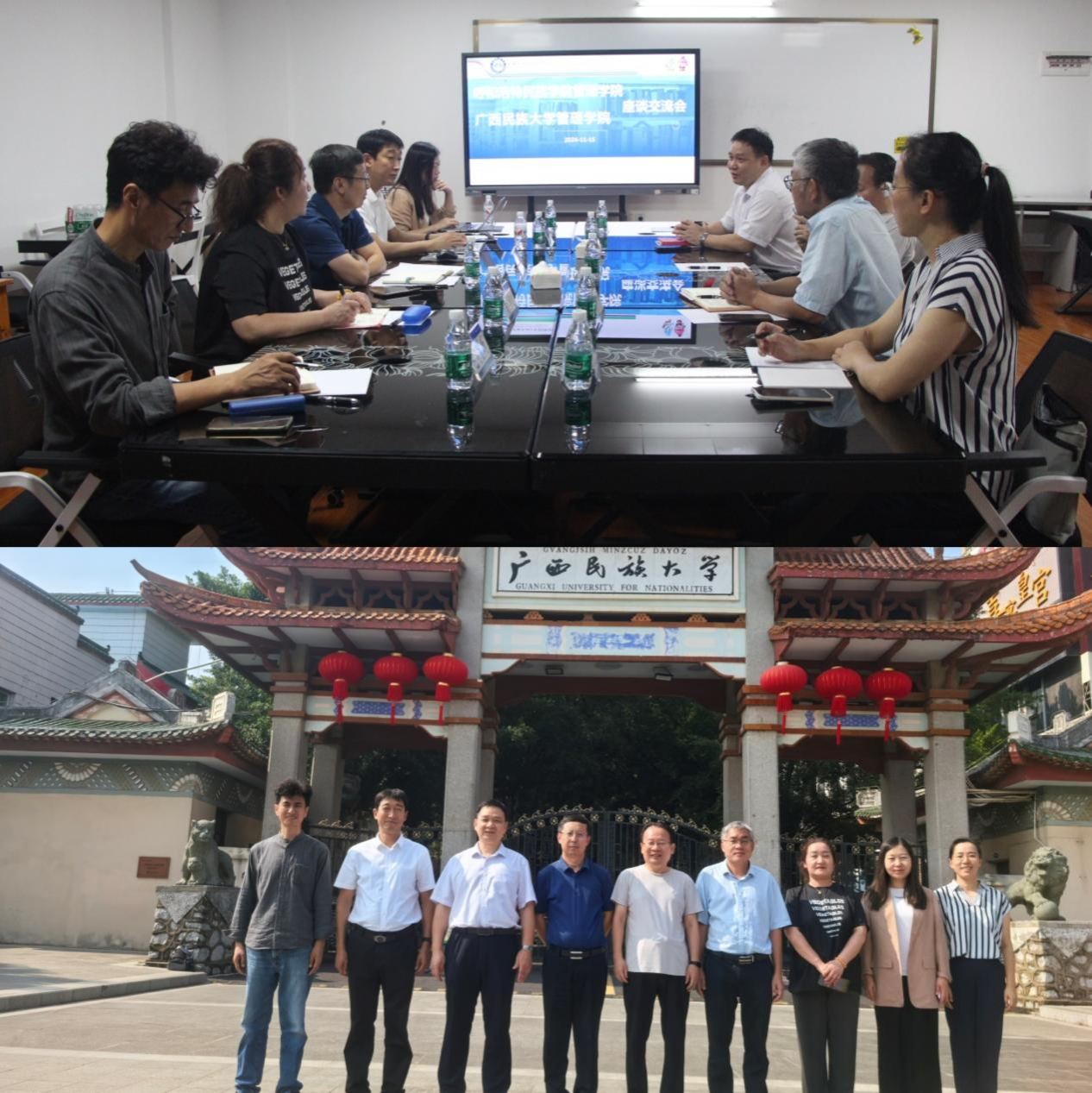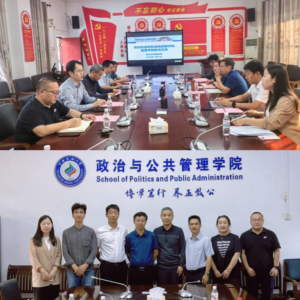 11月15日,管理学院院长哈斯同力嘎、党总支副书记青格乐图以及行政管理、档案学专业教师代表一行五人赴广西民族大学政治与公共管理学院和管理学院调研。