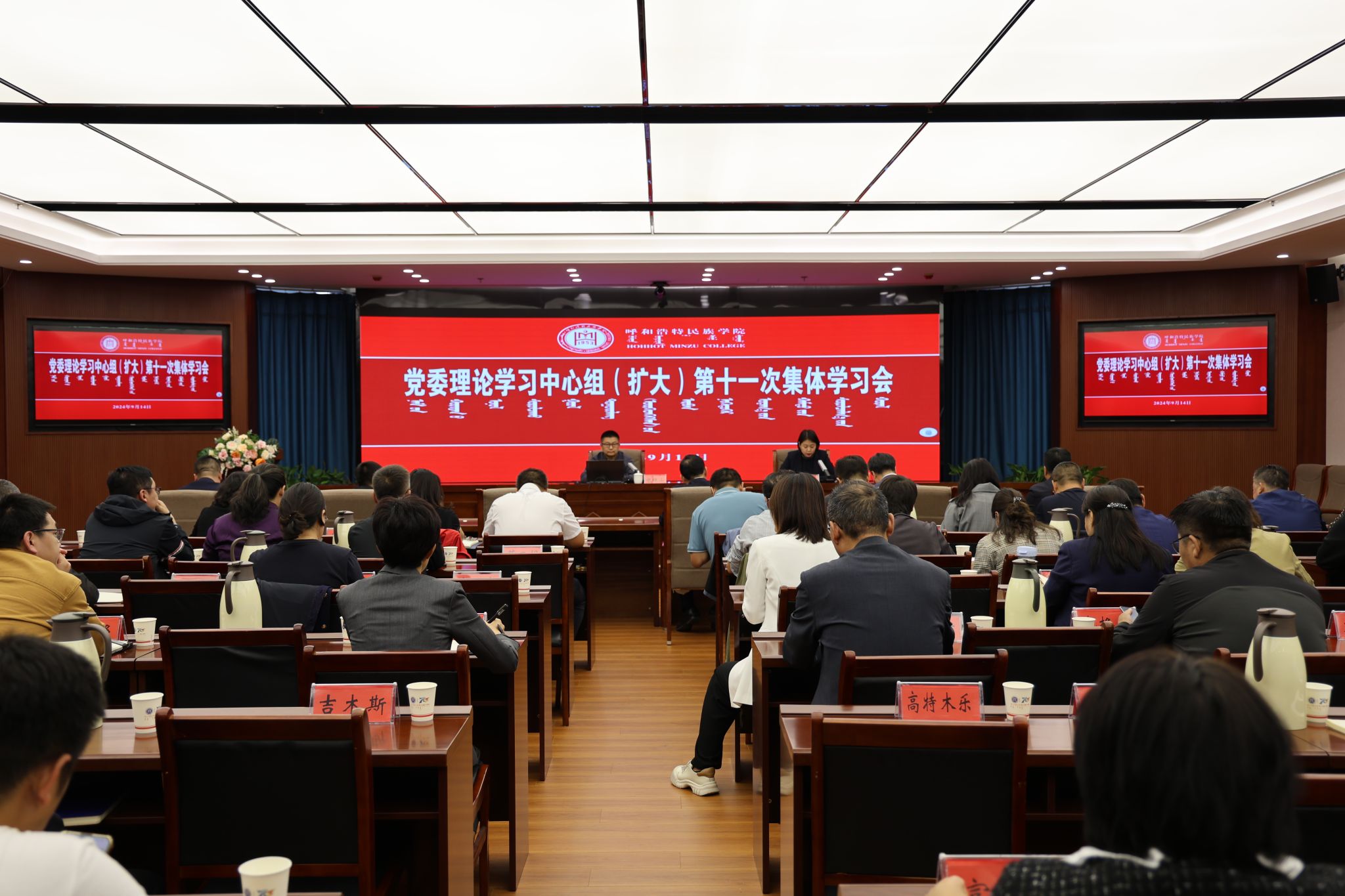 为深入学习贯彻党的二十届三中全会精神,把思想和行动统一到党中央的决策部署上来,9月14日,学校召开党委理论学习中心组(扩大)第十一次集体学习会,邀请内蒙古党校副校长包银山教授作专题辅导报告。校党委书记刘九万出席会议,党委理论学习中心组成员、全体处级干部、思政课教师代表参会。会议由校党委副书记格根哈斯主持。