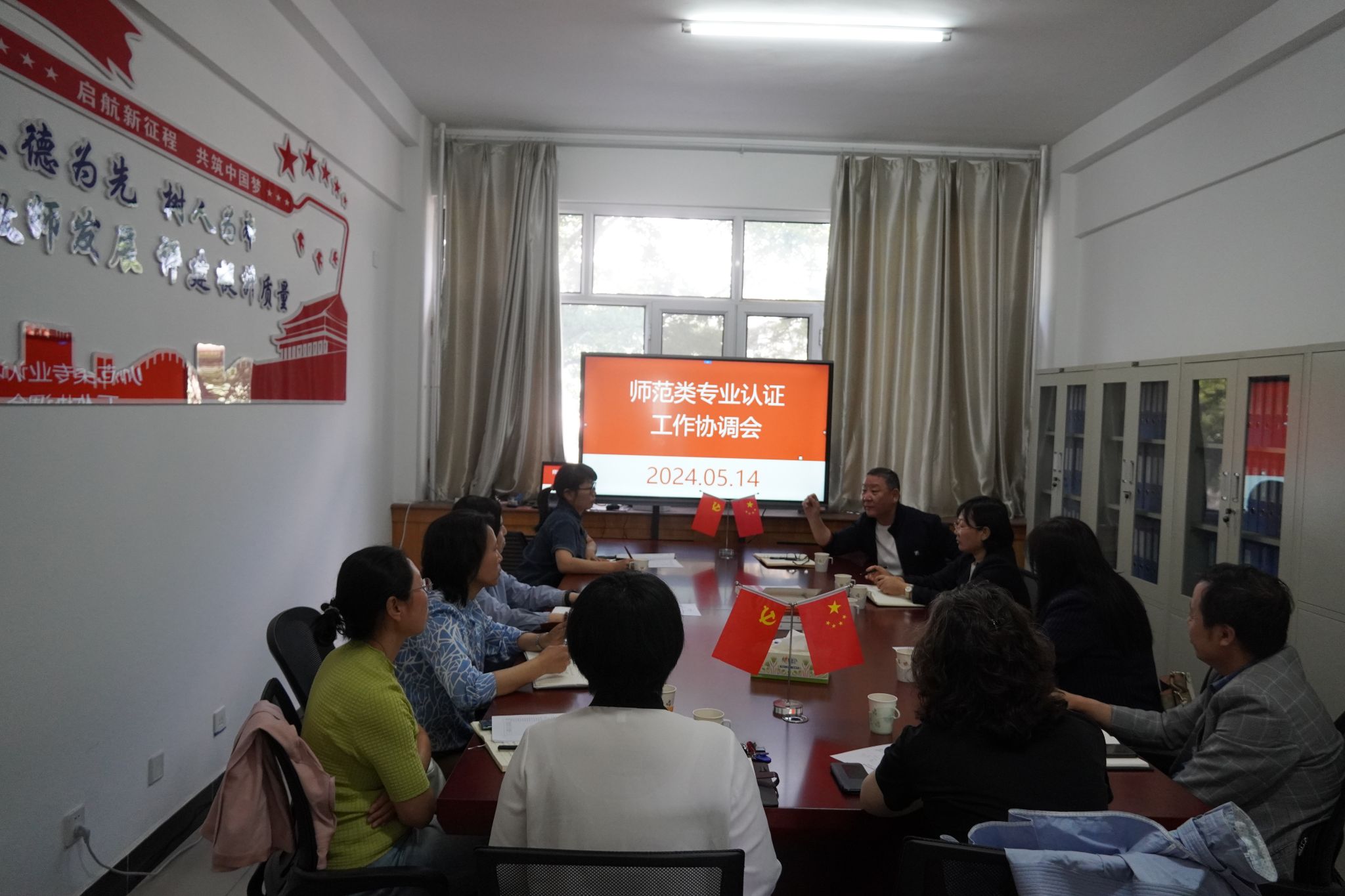 会议围绕学校管理文件制度的建立、完善和和落实、优化人才培养方案和课程教学大纲、开展课程评价标准的制定工作。进一步推进和落实教师教育类课程教师的基层锻炼和毕业生职业综合能力跟踪调研工作等方面进行协调,并达成共识。