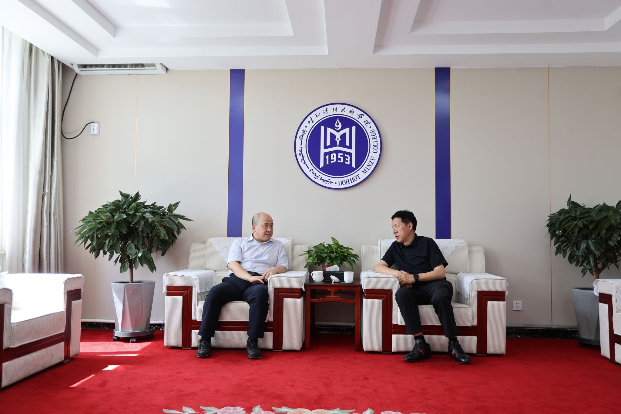 讲座前,校党委书记刘九万会见陈明教授,并交流意见。