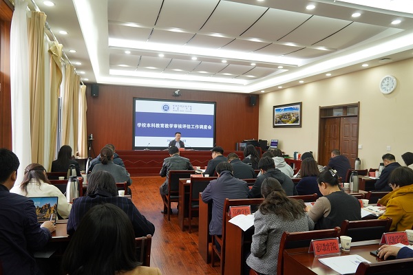 11月14日,学校本科教育教学审核评估调度会在办公楼四楼会议室举行。党委委员、副校长额尔敦布和主持会议。