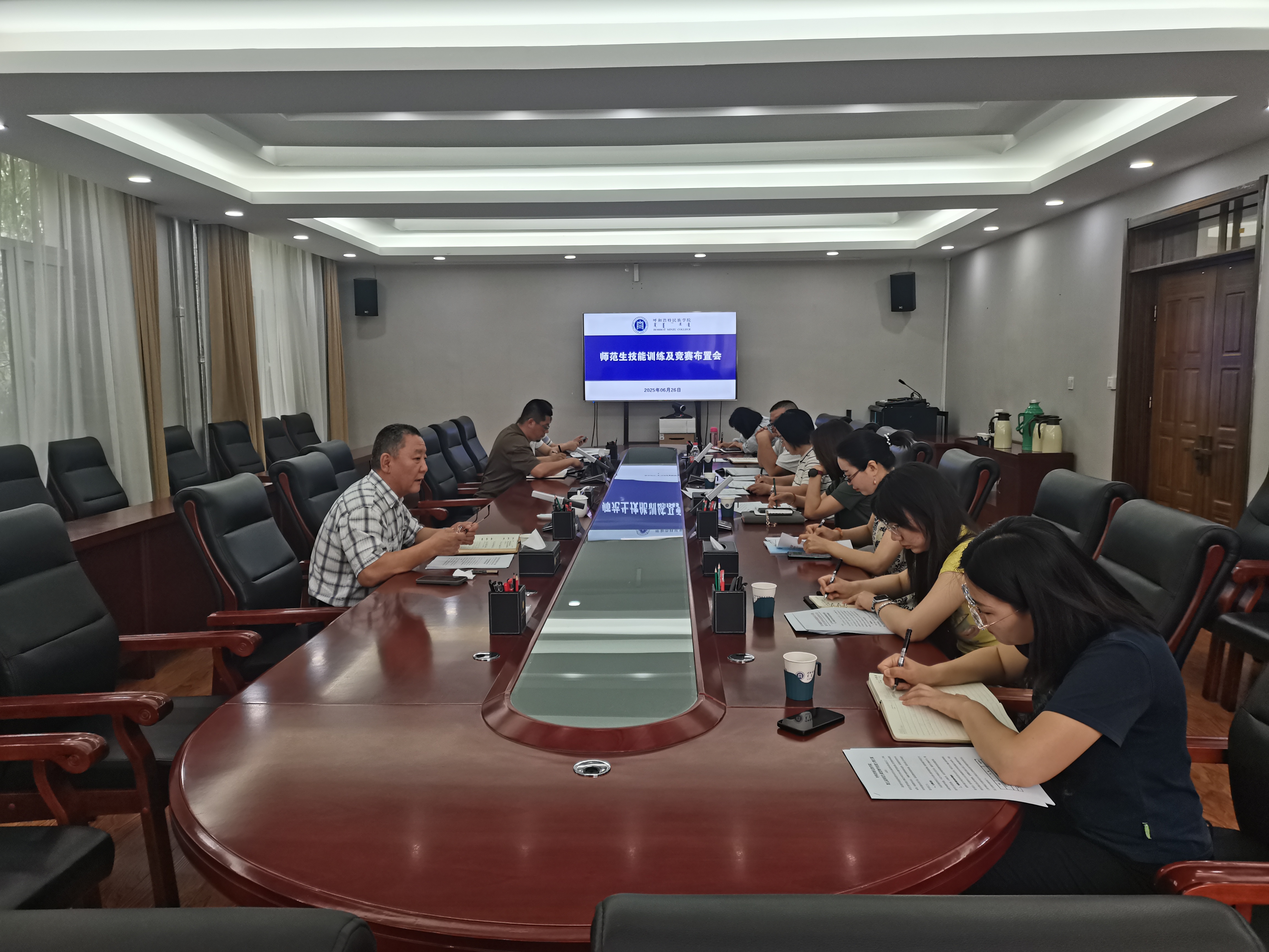 2025年6月26日,best365召开了京津冀蒙高校联盟师范分联盟第一届师范生教学技能竞赛和best365官网中文版登录第五届师范生课堂教学技能大赛部署以及《best365官网中文版登录师范生技能训练及评价指导性意见》解读会。教务处、相关学院负责人参会,由师范生技能训练中心主任胡毕斯哈拉图主持会议。