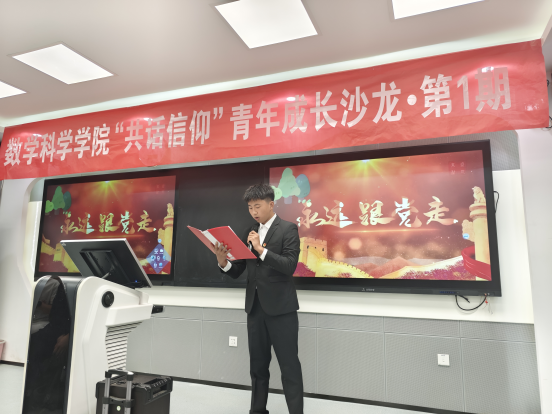 为进一步引领青年学子深入学习贯彻习近平新时代中国特色社会主义思想,增强自身使命意识与责任意识,争做有理想、敢担当、能吃苦、肯奋斗的新时代好青年,5月14日晚,数学科学学院在尚志楼423开展“共话信仰”青年成长沙龙·第一期活动。沙龙由学院团总支书记额日合木主持,学院“青马工程”培训班学员、各团支部代表、新发展团员代表共计90余名同学参与活动。