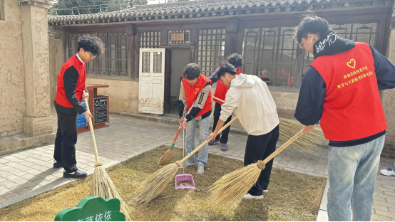 支部活动结束后,志愿者们领取工具,有序地进行打扫故居里亭、清扫庭院落叶等一系列工作