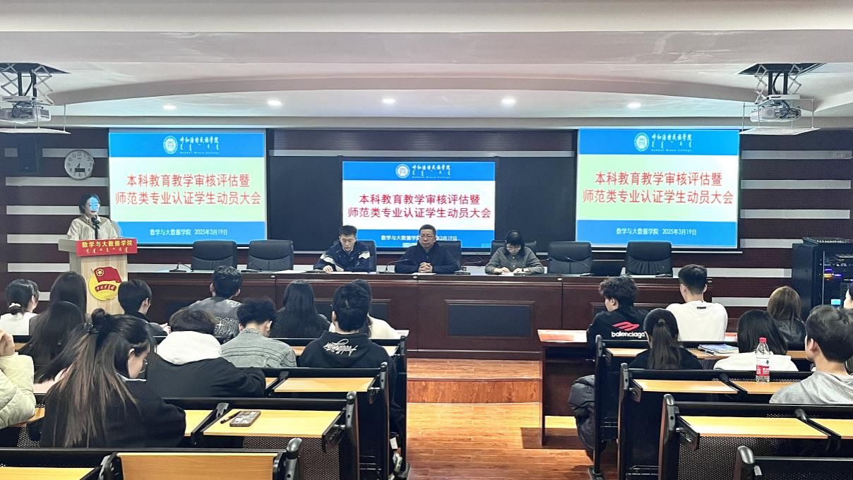 3月19日,学院在尚智楼413报告厅召开本科教育教学审核评估暨师范类专业认证学生动员大会。学院党总支书记白秀、学生工作办公室主任刘爱春、团总支书记额日合木,各班级班团干部、学生会全体成员等学生代表共90余人参加。