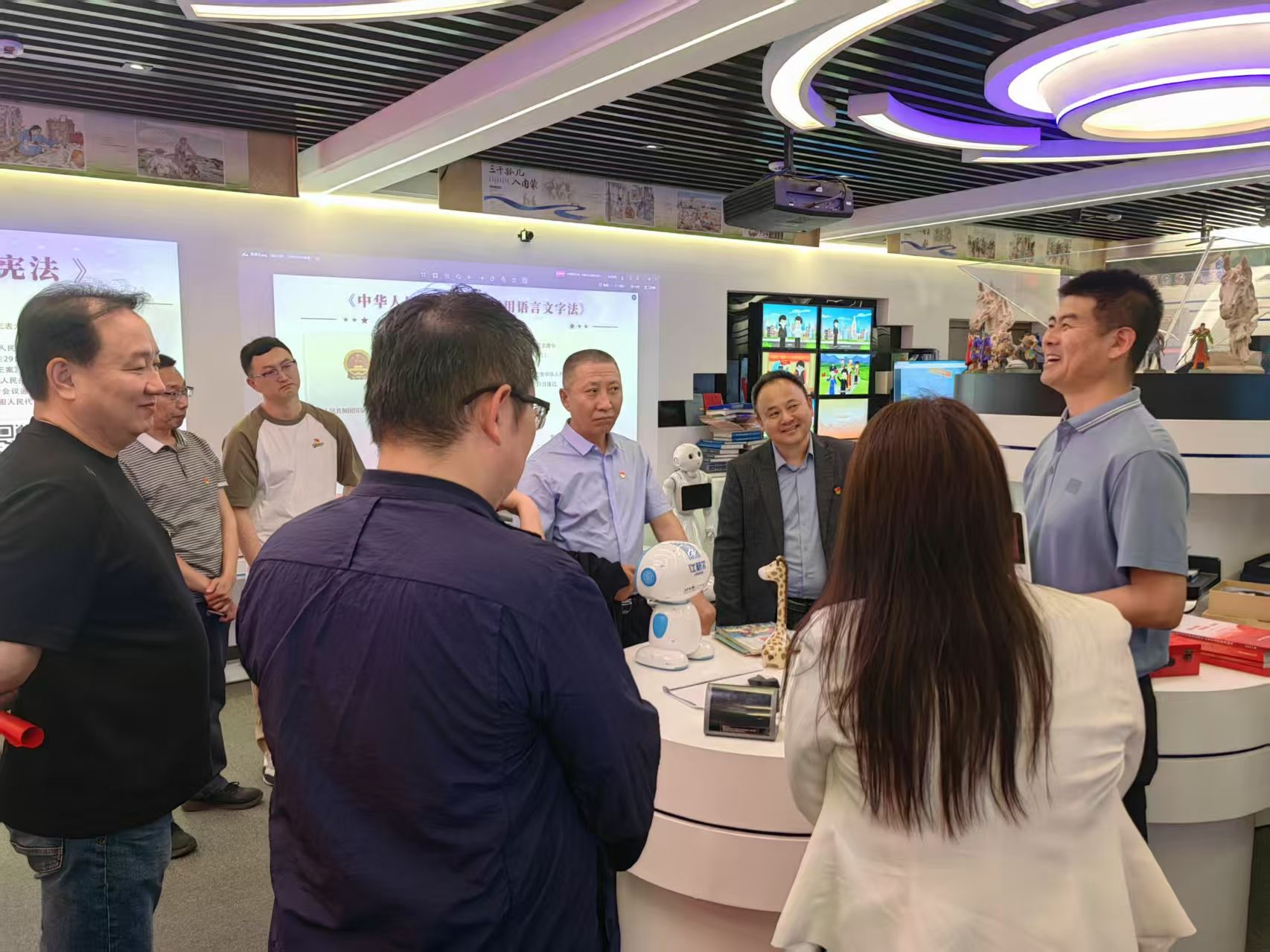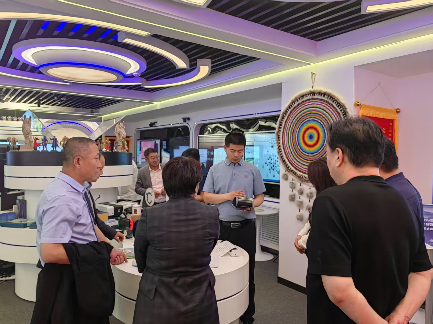 在中心展厅,党员们实地观摩了蒙古文AI智能产品展示、古籍文献数字化保护与传播工程成果,详细了解“语言技术+民族团结”创新路径。