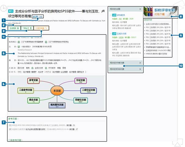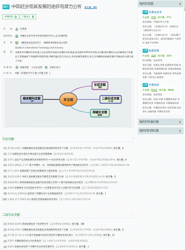 相关文献内容:直观展示该篇文献的相似文献、参考文献、二级参考文献、引证文献、二级引证文献等信息;