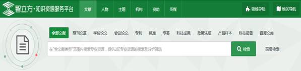 查询对象切换:平台提供“文献”、“传媒”、“主题”、“人物”、“机构”、“资助”对象切换,您可以点击不同的对象模块按需查看各类资源;
