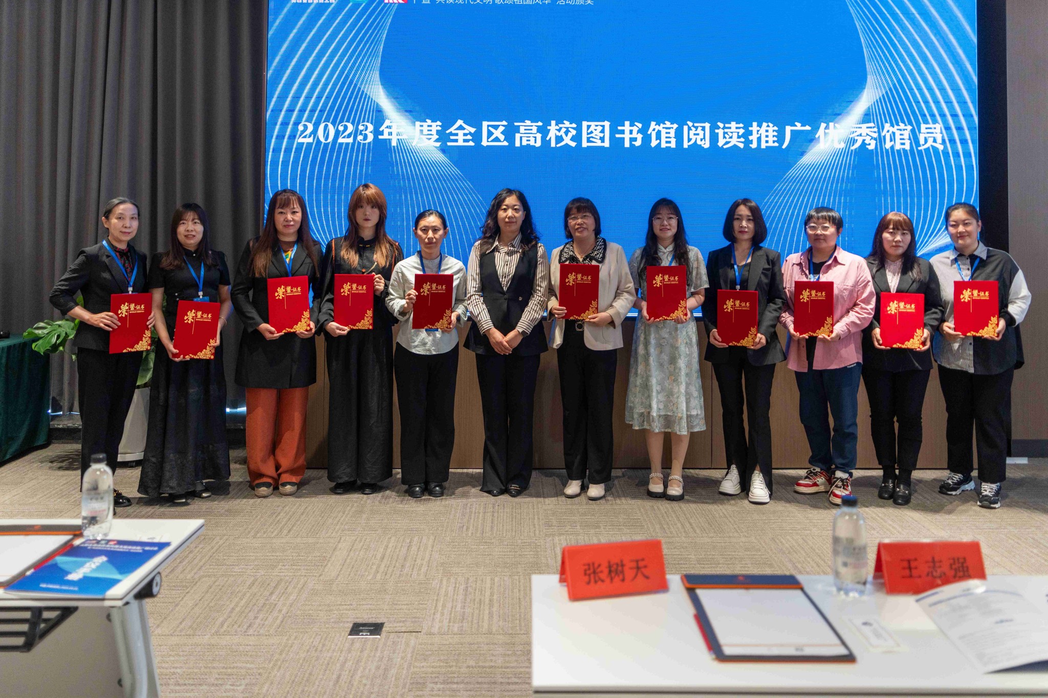 会议表彰了2023年在全区高校阅读推广活动中的优秀案例、优秀团队、优秀馆员和阅读之星。我馆“聚力智阅团”被评为阅读推广优秀团队一等奖。我馆提交的《赓续红色血脉 传承文化经典》案例荣获阅读推广优秀案例二等奖。我馆石梅荣获阅读推广优秀馆员称号。文学院陶晓婷、王霞霞被评为阅读之星。