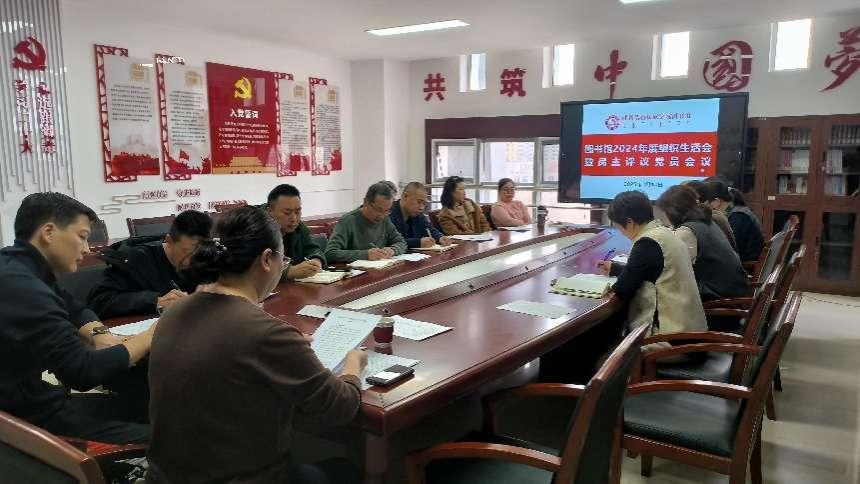 2025年3月14日上午,图书馆党支部在图书馆五楼党员活动室召开2024年度组织生活会,全体党员参会,机关党委联系委员、校团委副书记胡斯勒参加会议,会议由党支部书记郝喜凤主持。