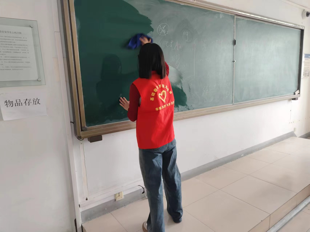 基础教育学院志愿者服务队开展“洁净教室”志愿服务活动