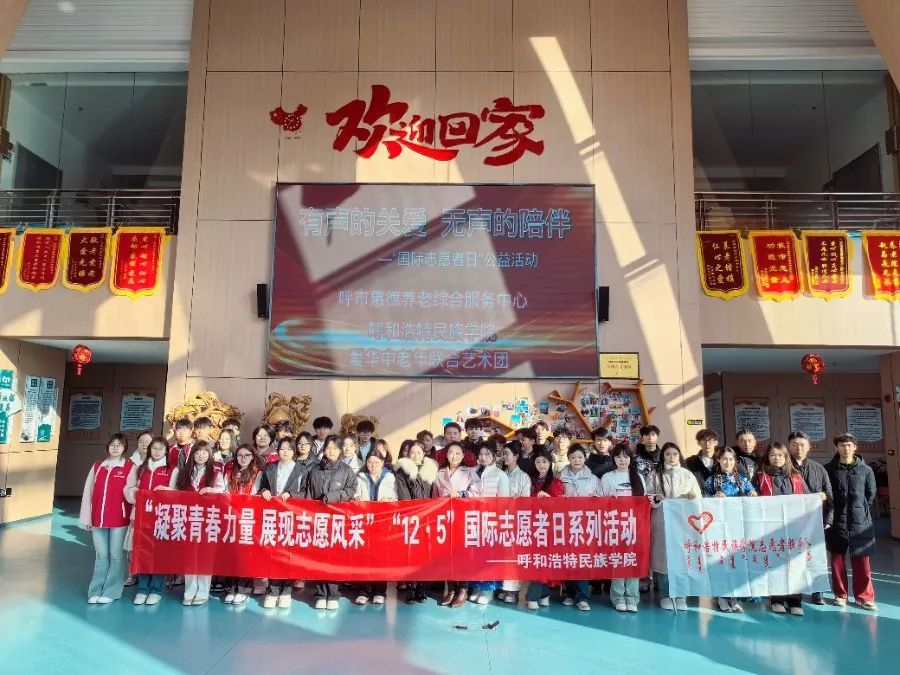 为纪念第39届“国际志愿者日”, 12月5日下午,best365志愿服务队、大学生艺术团前往呼市惠德养老综合服务中心共同开展了“有声的关爱 无声的陪伴”公益活动。校团委全体,大学生志愿者30余人参加了本次活动。