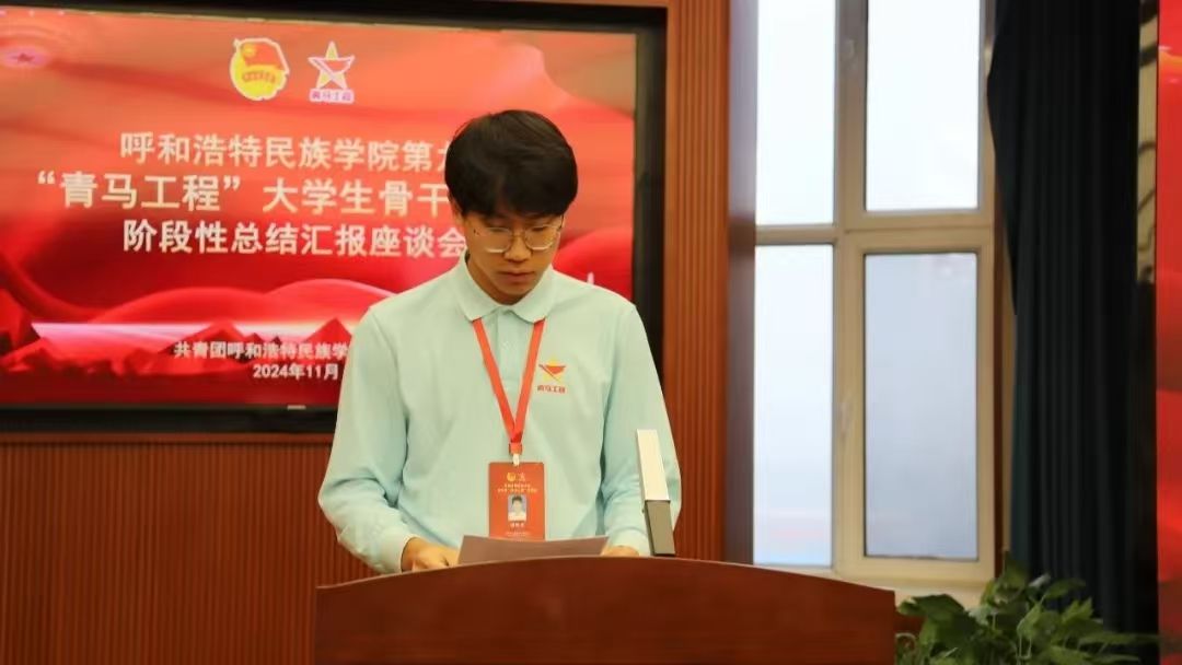汇报结束后,团委副书记胡斯勒做了总结发言。他对本次汇报会和学员们取得的进步给予了高度评价,并对所有青马班学员提出了三点要求:一是加强理论学习能力。要在学习和工作中增强对资源、材料的分析利用能力,提高自身的理论学习能力;二是要增加实践锻炼能力。积极参加各类社会实践活动,在实践中推动创新,在探索中寻求突破;三是培养沟通协调和团队协作能力。在团队建设和活动中提升团队协作能力与沟通能力。最后,他希望所有学员以此次青马班培训为契机,不忘初心、砥砺前行,认真学习并践行习近平新时代中国特色社会主义思想,不断成长为优秀的青年马克思主义者。
