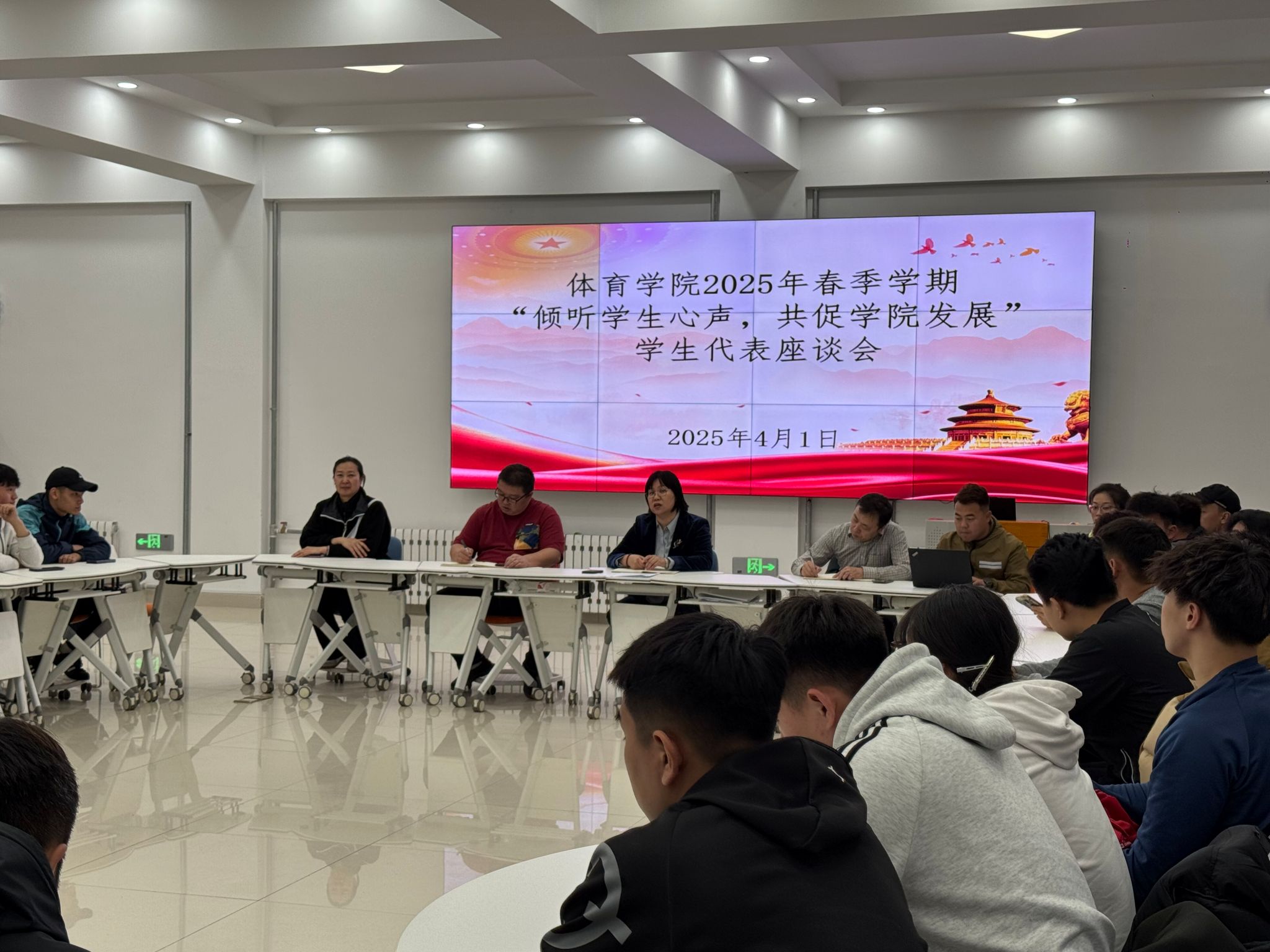 4月1日晚,体育学院于创业楼一楼教室召开2025年春季学期“倾听学生心声,共促学院发展”学生代表座谈会。学院领导班子成员、各年级辅导员、各专业学生代表以及各训练队队员代表齐聚一堂,共商学院发展与学生成长事宜。本次座谈会由学院党总支书记萨日胡主持,搭建起学院与学生沟通的桥梁。