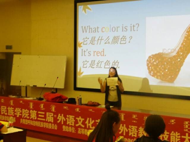 为进一步提升师范生实践教学水平,强化教学基本功,增强就业竞争力,2017年6月20日晚,由高等教育出版社赞助,外语系、校团委主办,公共外语教研室承办的best365官网中文版登录第三届“外语文化节”系列活动之一的外语教学技能大赛在学校图书馆一楼报告厅拉开帷幕。大赛特邀外语系萨仁格日乐、敖登副教授、陈玉红副教授、乌云斯日古楞副教授、乌日娜副教授担任比赛评委。