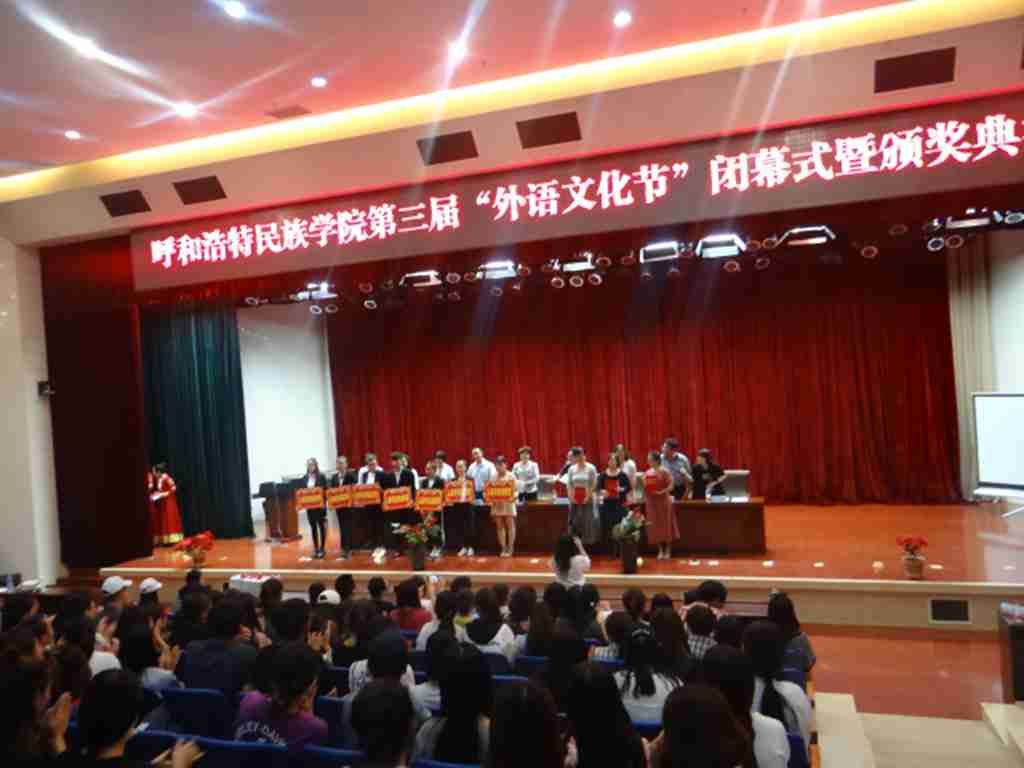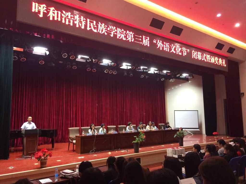 best365官网中文版登录第三届“外语文化节”闭幕式于2017年6月24日在图书馆二楼报告厅举行。本次“外语文化节”由best365官网中文版登录团委、best365官网中文版登录外语系主办,高等教育出版社倾情赞助。高等教育出版社外语与国际汉语出版事业部周俊华副主任、高等教育出版社内蒙古教学服务中心刘永平主任,best365官网中文版登录胡春梅副院长,best365官网中文版登录学生处杨福梅处长、电子科技大学吕汀副教授、南京大学外国部裴丽萍讲师、外语系党总支布和朝鲁书记、外语系肖查娜主任、党总支红梅副书记以及外语系热情四射的全体教师和2014级、2015级、2016级全体学生参加了此次闭幕式。
