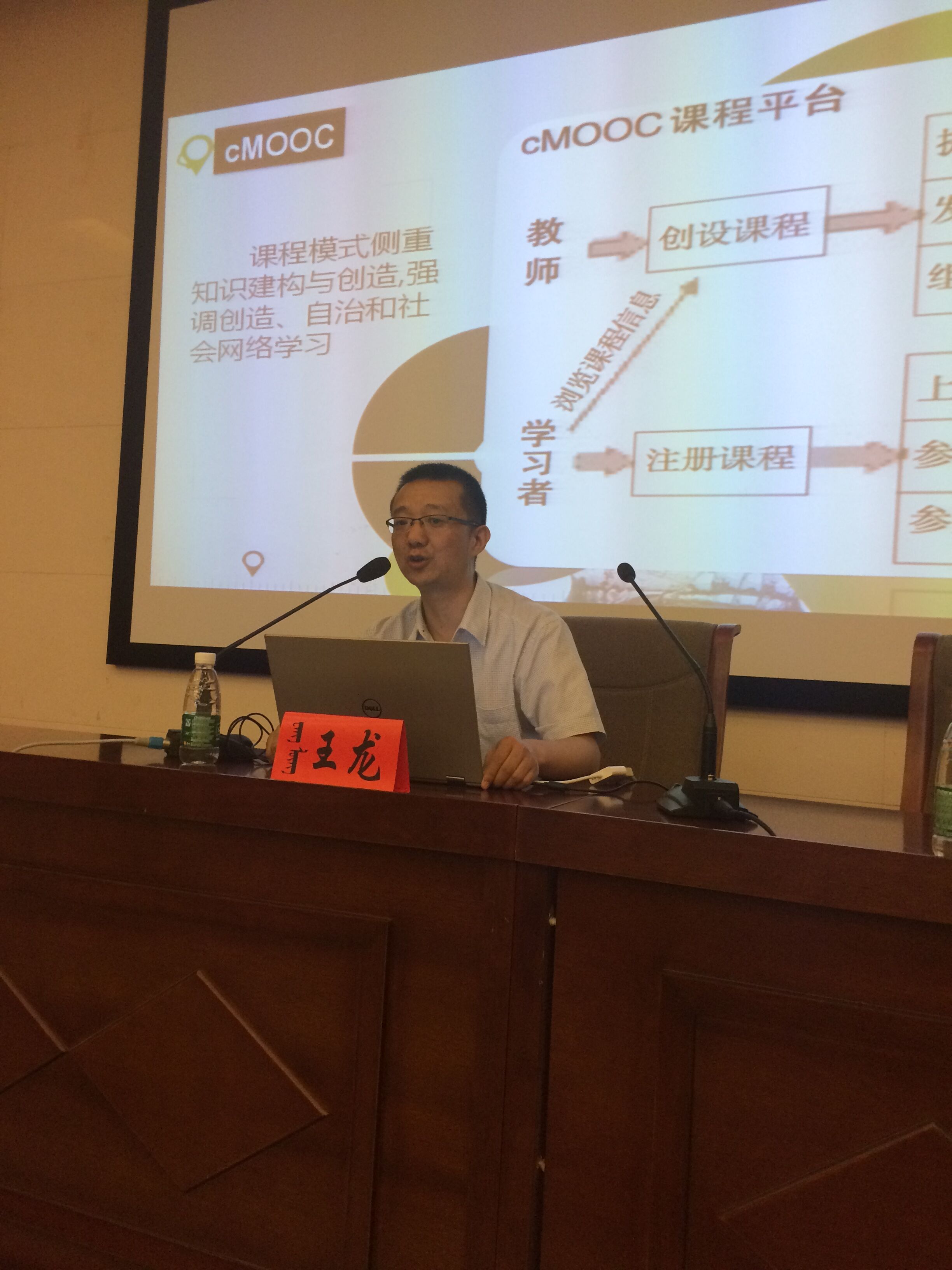 首先,王龙老师做了题为《外语翻转课堂与数字化语法课程技术分析》的讲座,王龙老师是西北民族大学外国语学院副教授,从事英语专业教学十四年,数字化外语课程建设项目技术负责人,研究方向为“基于信息化技术的外语翻转教学”。王龙副教授从现代技术应用角度出发,用微视频介绍了西北民大数字化语法课程建设项目,从选题到制作技术几个方面深入分析并展示了数字化外语微课实例的制作过程,让人耳目一新。