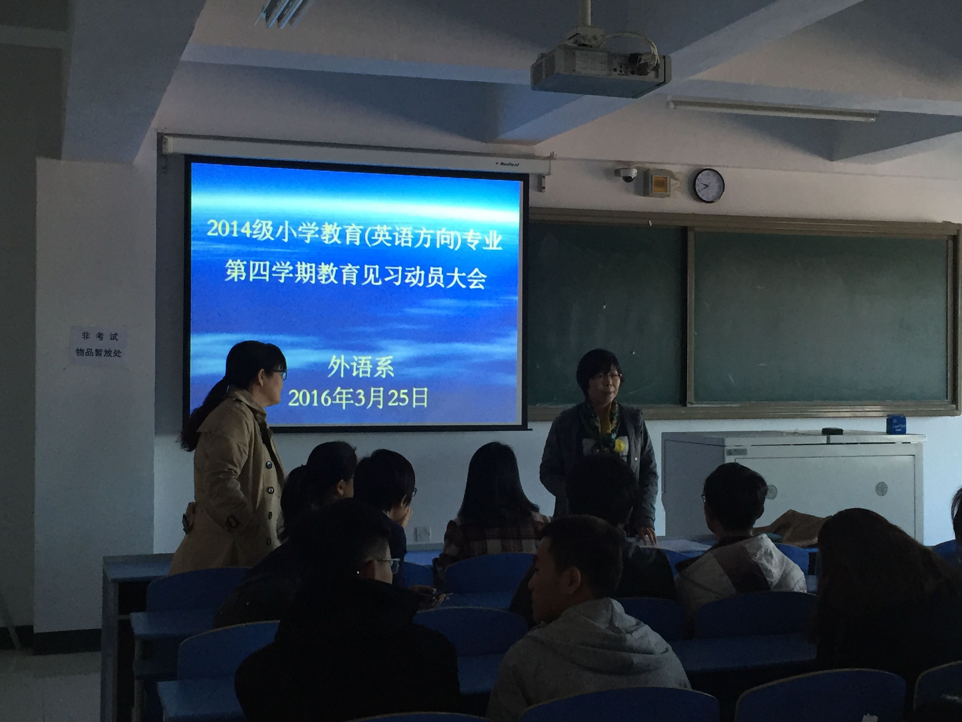 2016年3月25日,外语系在都林楼502教室召开了教育见习动员大会。见习指导教师、见习学生70余人参加了会议。动员大会由英语教研室主任红霞主持,并宣读了见习方案。会议的召开使学生们认识到见习的重要意义,了解了见习任务,明确了纪律要求,为他们顺利完成见习任务打下良好的基础。