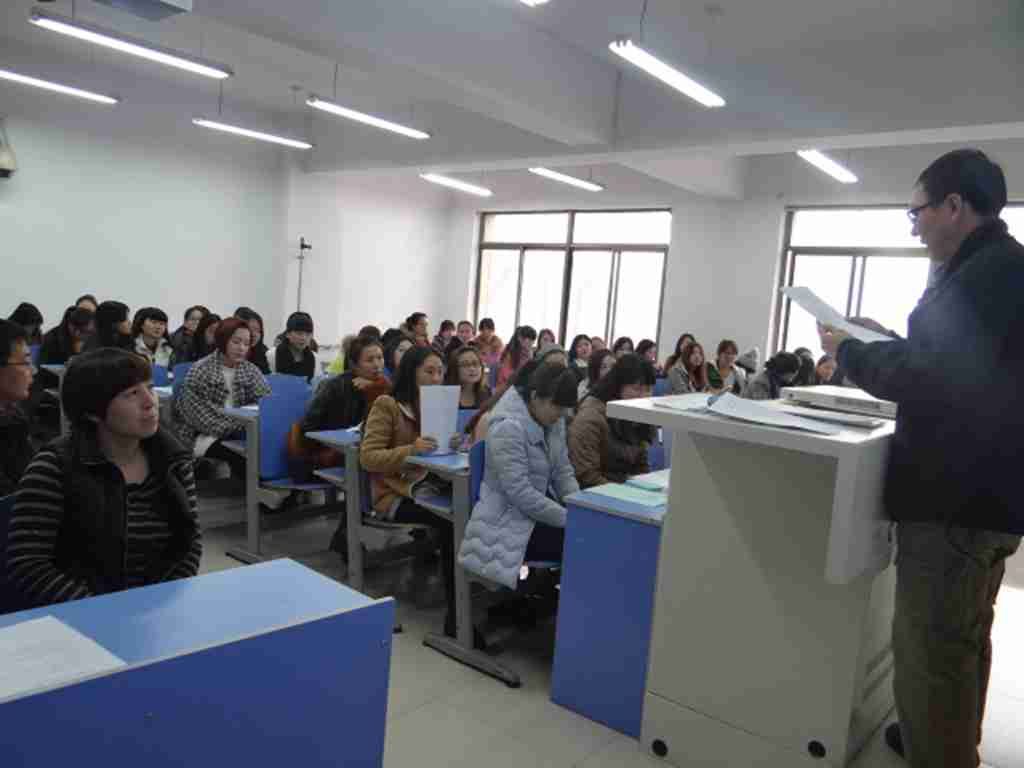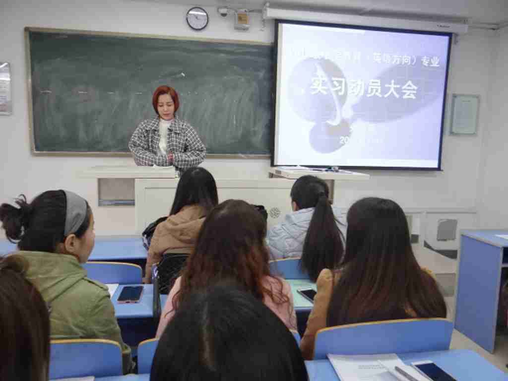 2015年11月11日下午2:30,外语系在都林楼607教室召开了2012级小学教育(英语方向)专业实习动员大会。会议由外语系主任肖查娜主持,外语系实习指导教师、2012级小学教育(英语方向)专业全体学生到会参加动员。