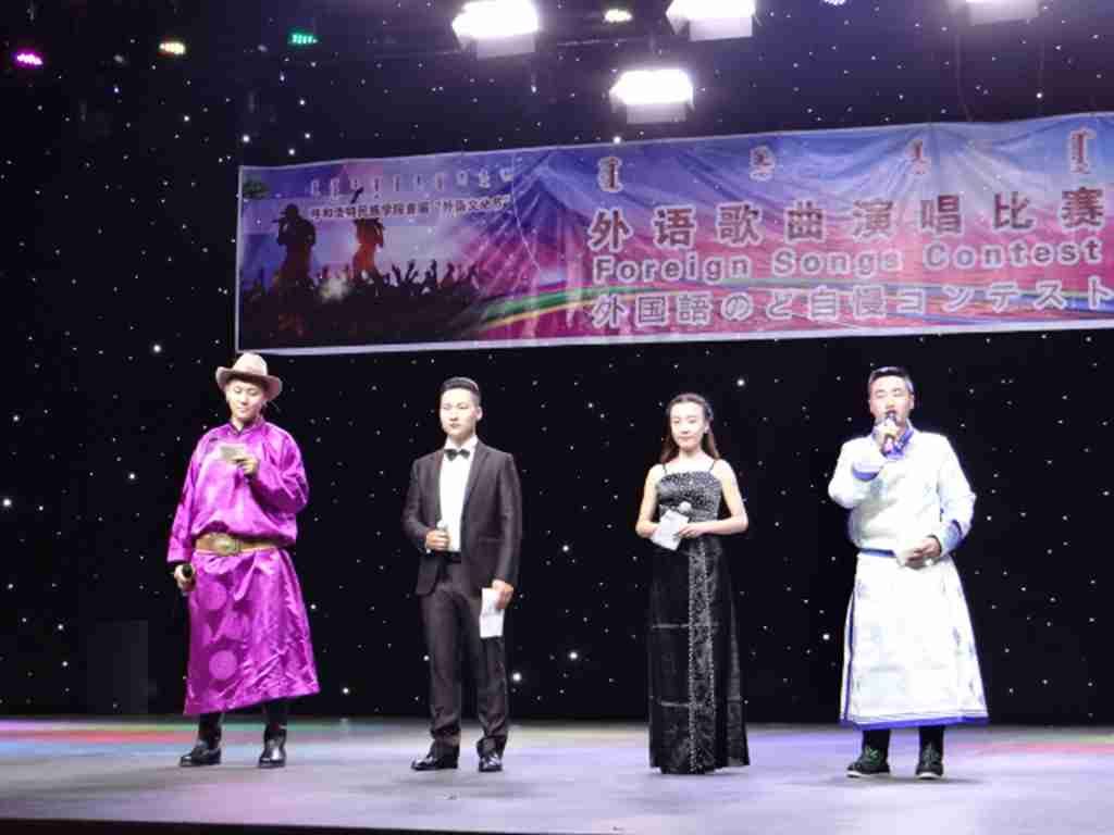 外语歌曲演唱比赛是best365官网中文版登录首届“外语文化节”的系列活动之一,2015年5月25日下午在学院演播厅拉开帷幕。本次比赛由外语系和学院团委联合主办,外语系公共外语教研室承办。比赛特邀额斯琴老师、包玉柱老师、繁荣老师、曼都呼老师、红霞老师担任评委。