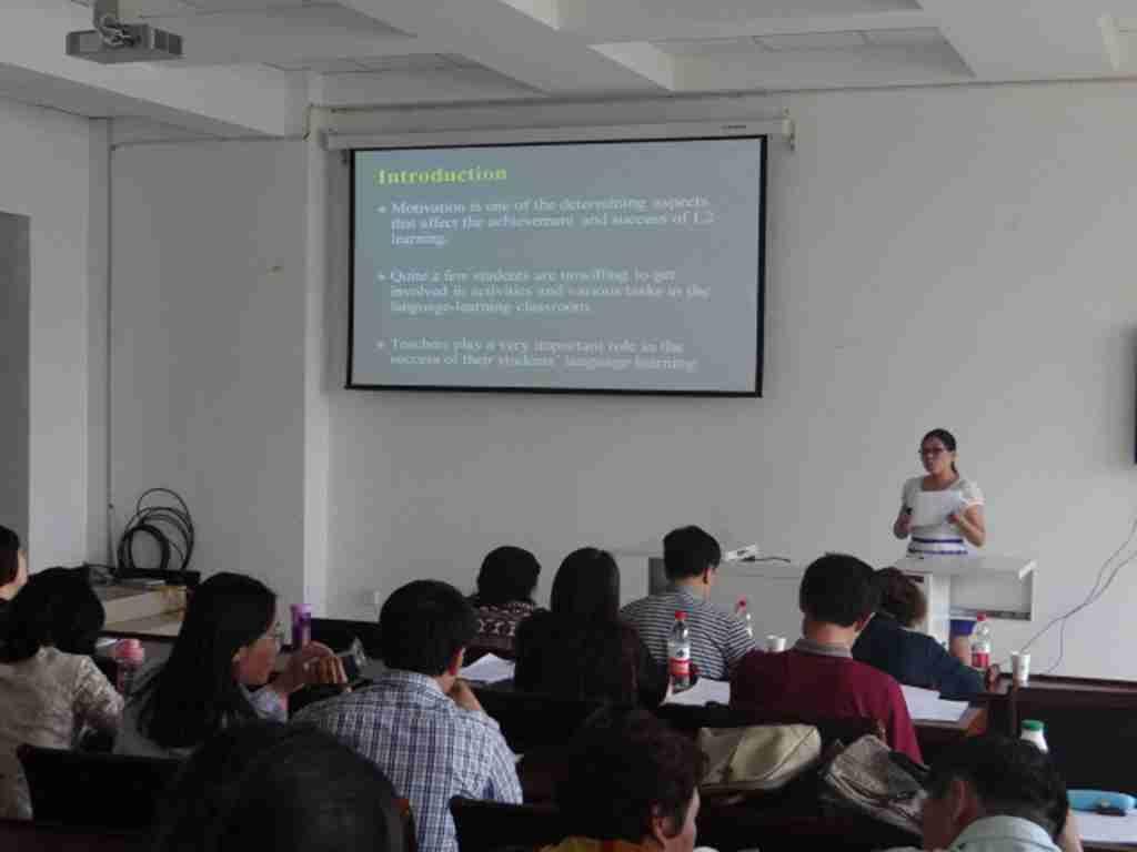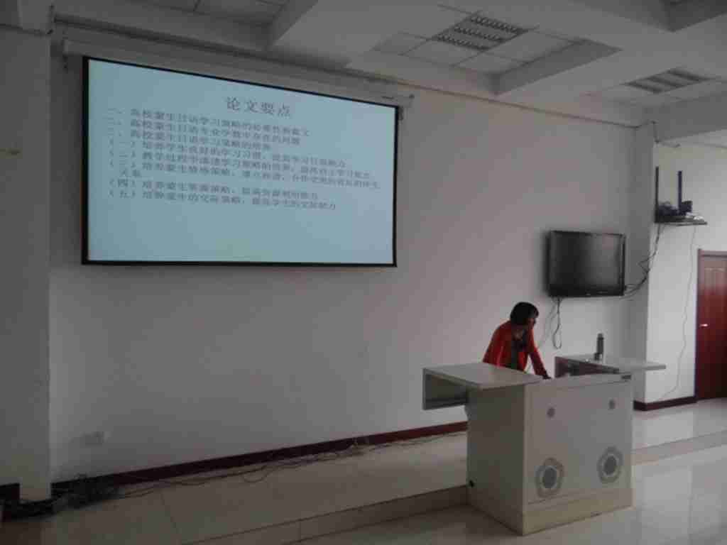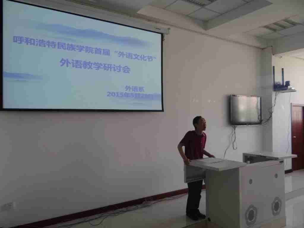 best365官网中文版登录首届“外语文化节”系列活动之一的外语教学研讨会于2015年5月29日召开。当日下午,外语系教师齐聚新教学楼106教室,围绕“提升教师教学能力,向课堂教学要质量”这一主题展开研讨。研讨会由系教学督导组承办,督导组先就教师结合本人本职工作和研究方向撰写的教研论文进行筛选,推荐六名教师的论文参加研讨。参加研讨的教师采用PPT形式宣读论文。论文宣读限时每人15分钟,以现场答辩、专家打分形式评出优秀论文。论文内容涉及实习实训基地建设,少数民族学生外语学习动机,外语教学策略,外语学习中的的语言迁移等问题。教学研讨会现场气氛热烈,经过学院督导金锁教授、娜仁图雅教授、魏秀兰教授的认真评判,萨仁格日乐老师获得优秀论文一等奖,高娃、秦红喜老师获得优秀论文二等奖,乌日娜、乌云斯日古楞、红霞老师获得优秀论文三等奖。