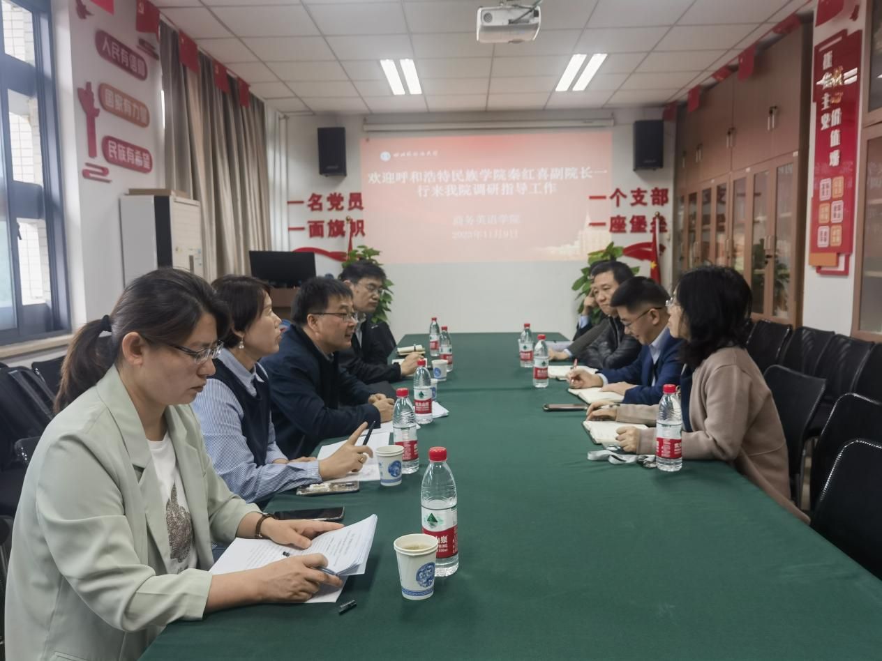 为推进学院学科专业转型优化和高质量发展,11月9日,外国语学院秦红喜副院长一行赴四川外国语大学考察学习。四川外国语大学商务英语学院院长胡文飞、党总支书记常慧明、副院长董曼霞及新闻传播学院副院长郭赫男出席座谈会,会议由胡文飞院长主持。