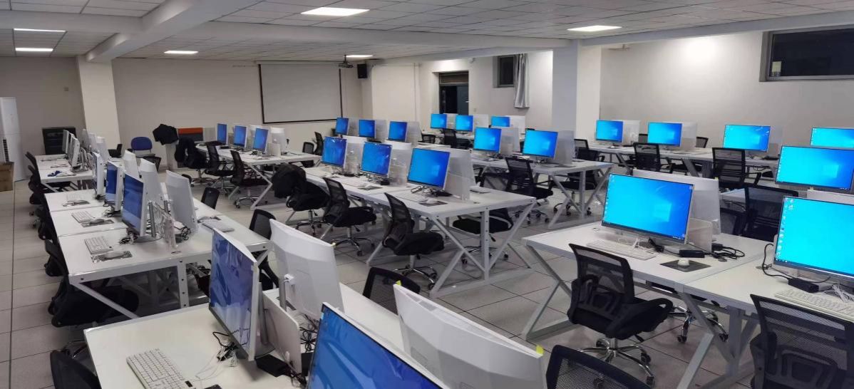 该实训室占地面积183平方米,机器配置了先进的i5和i7处理器/16GB内存/512闪存/独显/27寸护眼屏,学生和高校教师可用于日常海外传播营销、无人直播运营、跨境电商运营、产品开发,以及AIGC涉及到的相关软件工具的研发和实训使用,甚至像Stable Diffusion这样耗显存的AIGC软件也能在该实训室内顺畅运行,投入的设施和设备至少在五年内不会落伍。此实验室由山东恒邦科技提供设备以及先进的信息技术和软件资源支持、专业的培训资源和丰富的行业经验,为学生搭建了一个实战、实习实训的空间,为老师提供了全方位“校中企”的科研平台。实训室内除配备了最新的多媒体设备外,还搭建了企业自主开发的国际贸易海外独立站运营系统,跨境电商操作平台和无人直播系统等企业行业实际使用的软件产品,为学生提供了国际市场营销、海外宣传、贸易洽谈、跨境运营、直播运营、实时翻译、多语种翻译等环节的实操机会,AI面试辅导等辅助功能有助于提升学生的实践能力和就业竞争力。