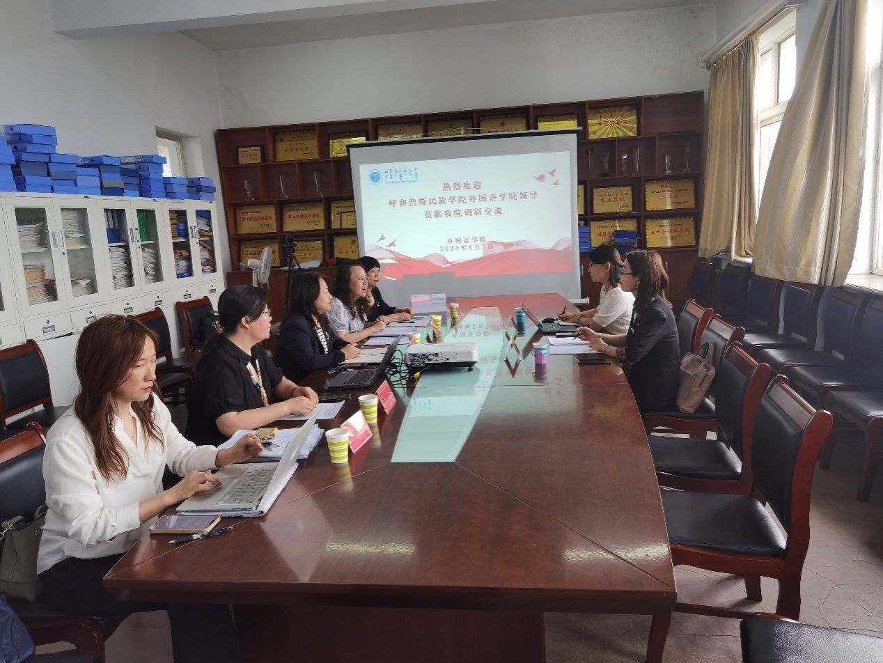 6月7日,best365官网中文版登录外国语学院副院长红鸽、英语教育教研室主任乌优赴内蒙古民族大学外国语学院进行调研,双方就师范专业认证开展交流活动。内蒙古民族大学外国语学院院长卢国荣、副院长安琪、其他相关教研室主任及教师共同参与了交流座谈会。