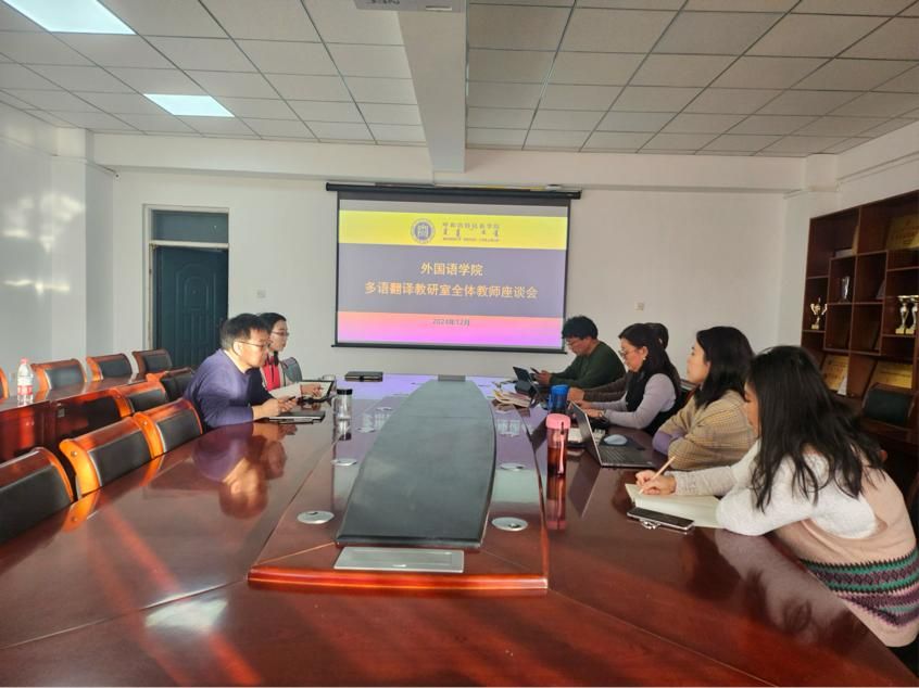 为提升英汉翻译教研室的教学质量,对现有人才培养体系进行更为精细化的优化与升级,12月17日上午,外国语学院在学院会议室召开多语翻译教研室全体教师座谈会。