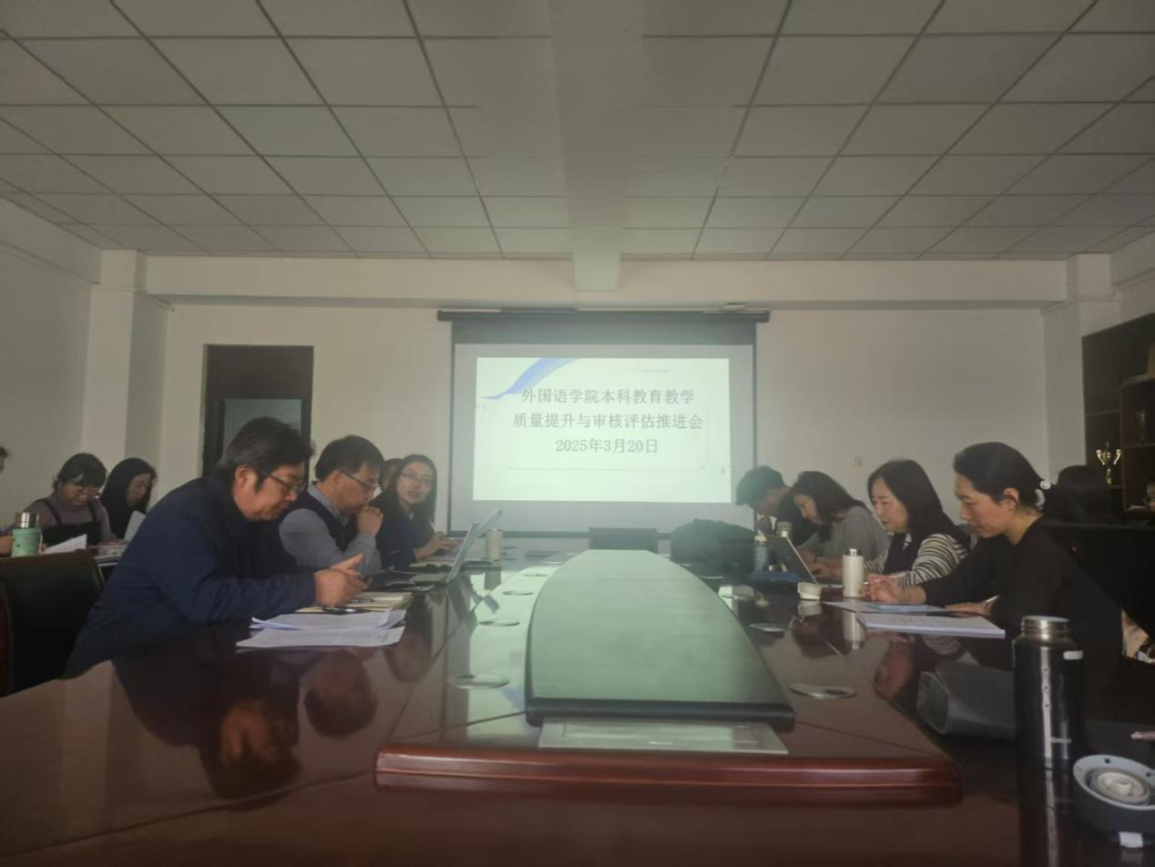 为全面贯彻best365官网中文版登录“本科教育教学质量提升年”工作部署,落实新一轮本科教育教学审核评估要求,外国语学院于3月20日在都林楼611会议室召开专题培训会。会议以"强能力、促改革、迎评估"为主线,系统部署教师队伍建设和评建准备工作。学院党政领导班子及全体教职工参会,共同谋划高质量发展新路径。