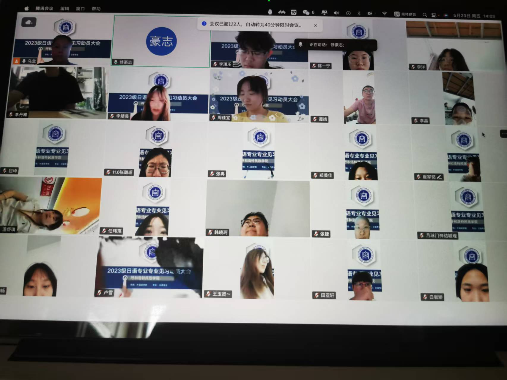 为深化产教融合,提升学生实践能力,帮助日语专业学生更好地完成专业见习任务,外国语学院日语教研室于5月23日下午以线上形式召开了2023级日语专业见习动员大会。日语教研室教师、校企合作单位代表以及2023级日语专业全体学生参加了此次会议。