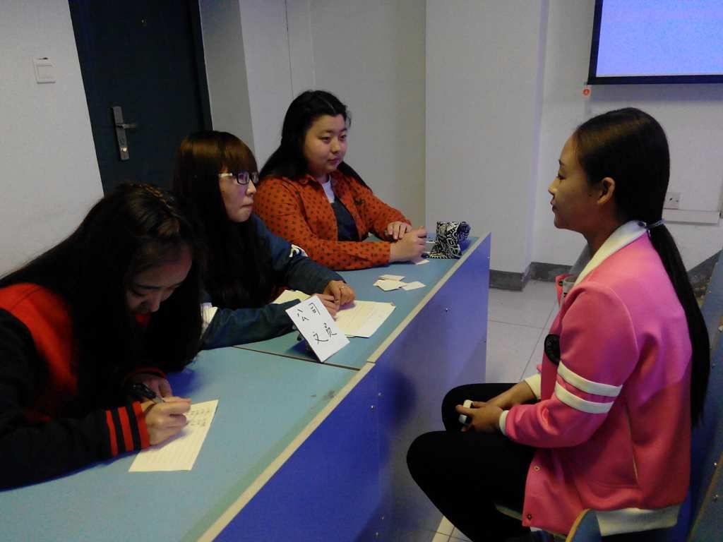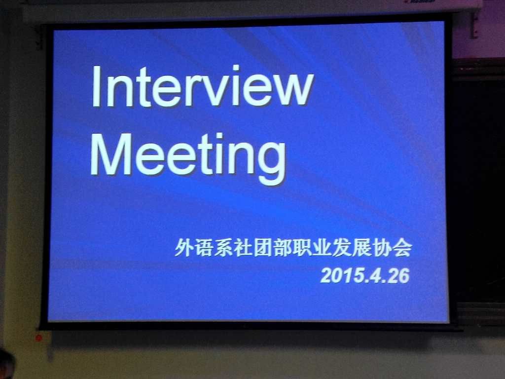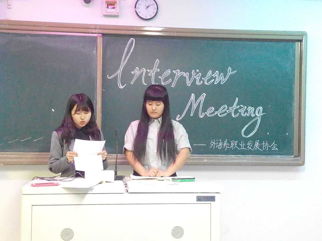 为了提高大学生竞争意识和应聘技能,外语系职业发展协会于2015年4月26日晚在602教室举办了以“面试会”为主题活动。外语系英语、日语专业的40余学生参加了此次活动。
