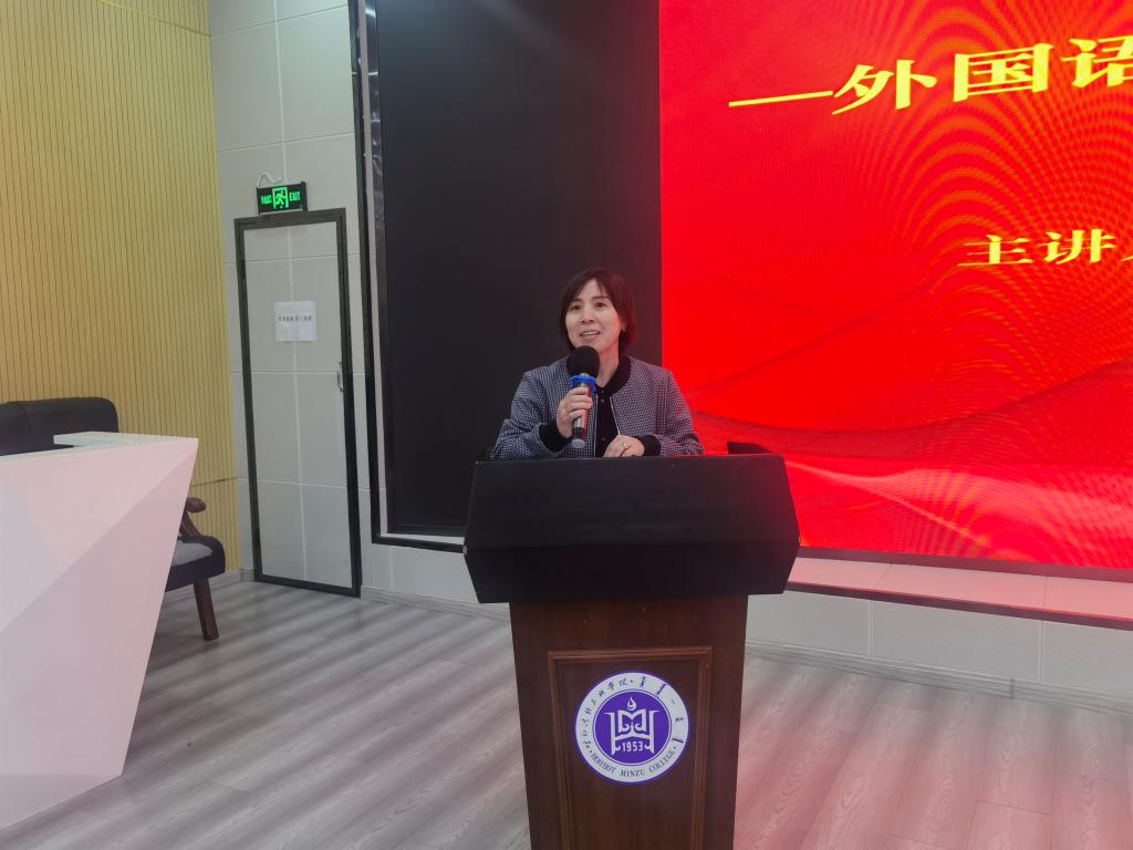 为进一步强化我院学生的职业发展教育,促进学生树立正确的就业观念、提高就业和实践的能力,值此喜迎校庆70周年之际,外国语学院于5月6日下午在北院图书馆一楼报告厅举办“情系母校,共话成长”高效就业专题分享会。本次分享会特邀请学院2003届优秀毕业生额尔敦图主讲,学院领导班子、2023届毕业生和2020级学生代表、班主任、辅导员共计150余人现场聆听。