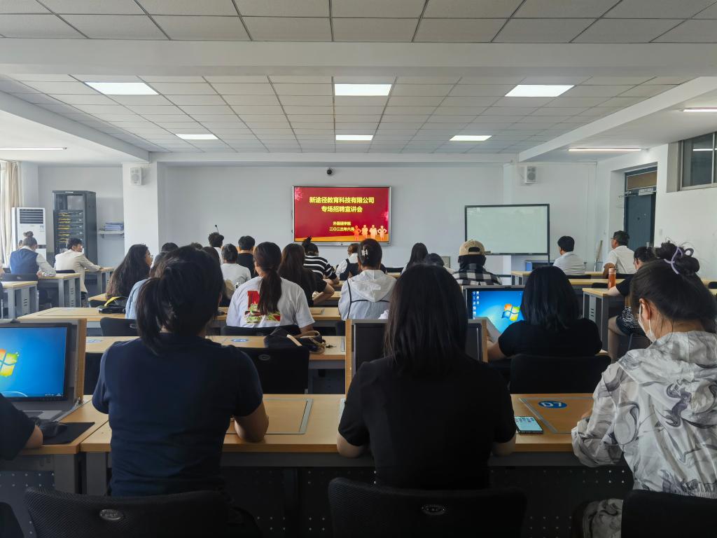 会后,新途径教育科技有限公司在都林楼518教室举办了专场招聘宣讲会,学院未就业毕业生参加了现场招聘。新途径教育科技有限公司公基常识研究院教研员刘洋、面试研究院教研员乌妮尔、申论研究院教研员李想、学员服务中心咨询部主管任沛燃、学员服务中心维护部主管高玲结合各自分工领域、职责内容、薪资待遇、工作要求、用人需求等方面作了详细介绍,并就学生感兴趣的问题进行了交流解惑。