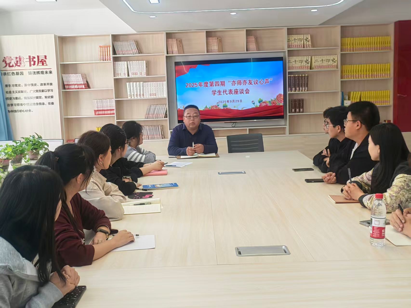 9月29日,学生工作部组织17个学院学生代表在“一站式”学生社区“一学院一品牌”主题文化公寓党团活动室召开2025年第四期“亦师亦友议心声”学生代表座谈会。