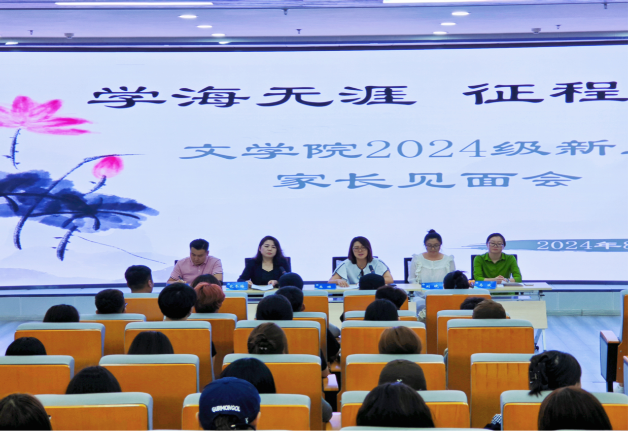 为搭建家校沟通桥梁,共同助力2024级新生开启大学生活新篇章,文学院于8月31日在北图书馆一楼报告厅举行了“学海无涯征程再起”——新生家长见面会。院长高娃、党总支副书记包冬梅、新生班主任、辅导员及2024级新生及家长参加本次见面会,会议由包冬梅主持。