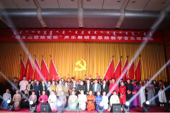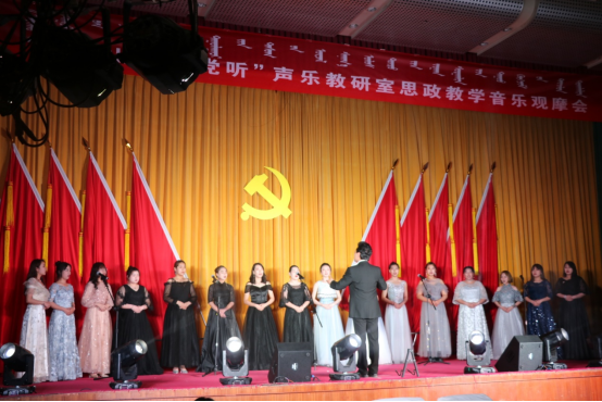 5月15日,音乐学院声乐教研室结合党史学习教育“学史明理、学史增信、学史崇德、学史力行”的目标要求,贯彻落实习近平总书记关于民族工作、推广使用国家通用语言文字的重要论述和对内蒙古工作重要讲话重要指示批示精神,铸牢中华民族共同体意识,于演艺厅举办了“唱支山歌给党听”声乐教研室思政教学音乐观摩会。