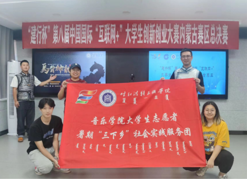 音乐学院“马背神韵”发展成就观察团由孙家宁、郝愿、韩熙、张子晗、赵庆朋等同学组成,在学院团总支书记包为为的指导下,团队项目参加了第八届中国国际“互联网+”大学生创新创业大赛,通过层层选拔,最终闯入内蒙古区赛总决赛并摘得自治区银奖。